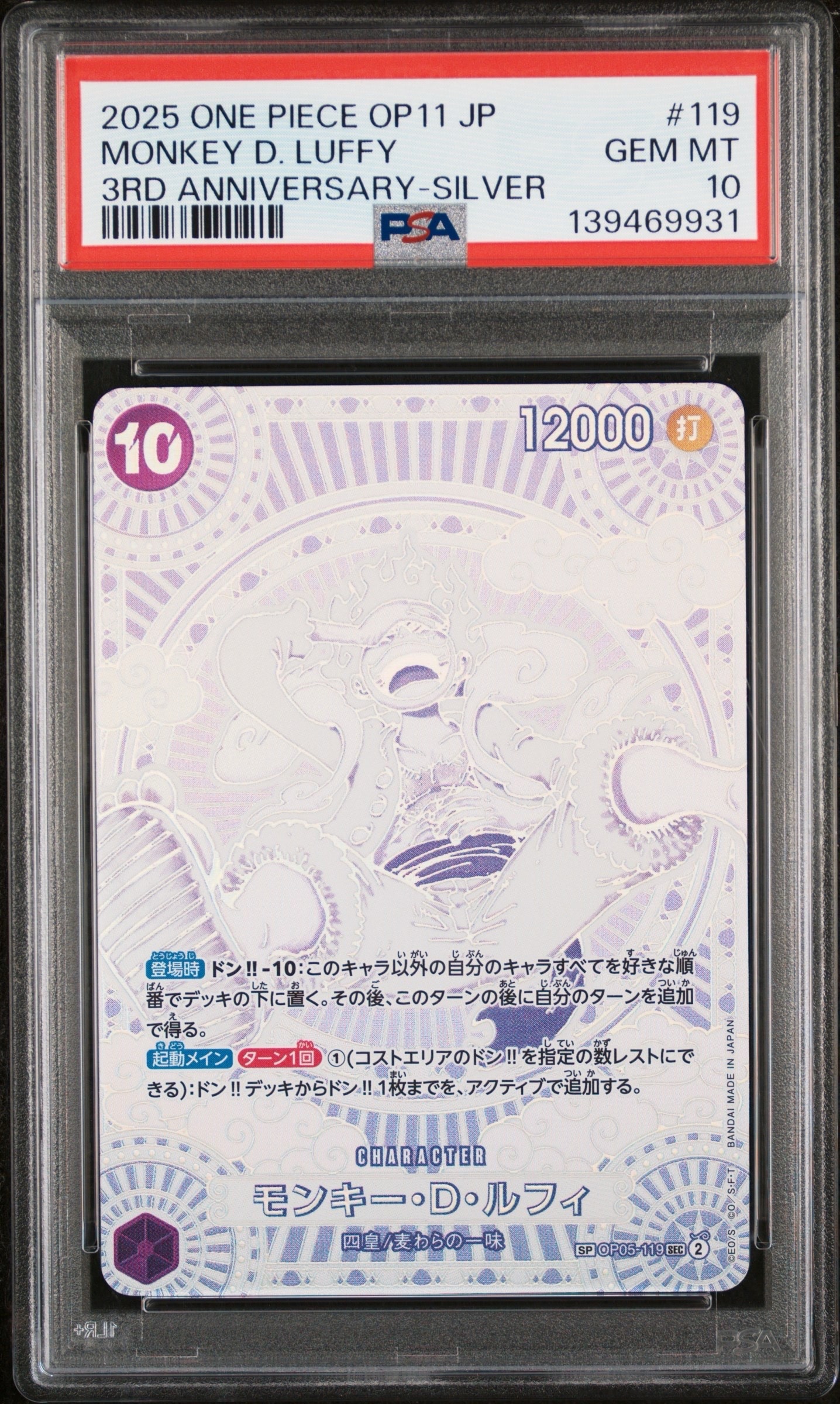 モンキー・D・ルフィ SEC-SPC :3周年スペシャルカード(銀背景) [OP05-119](ブースターパック「神速の拳」)