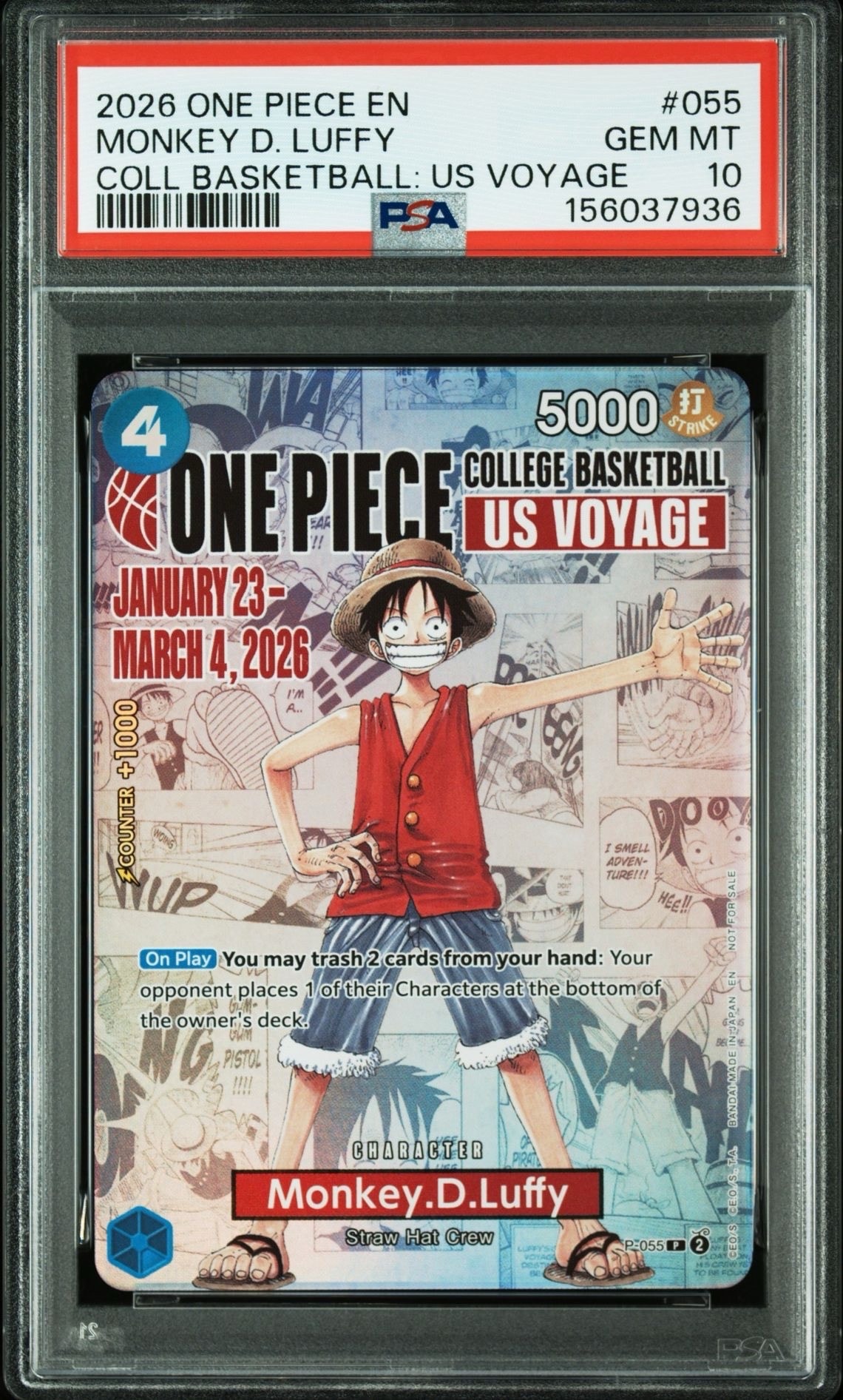 モンキー・D・ルフィ:P (開封済) [P-055]【英語版】(プロモーションカード「ワンピース カレッジ バスケットボール:USボヤージュ」)