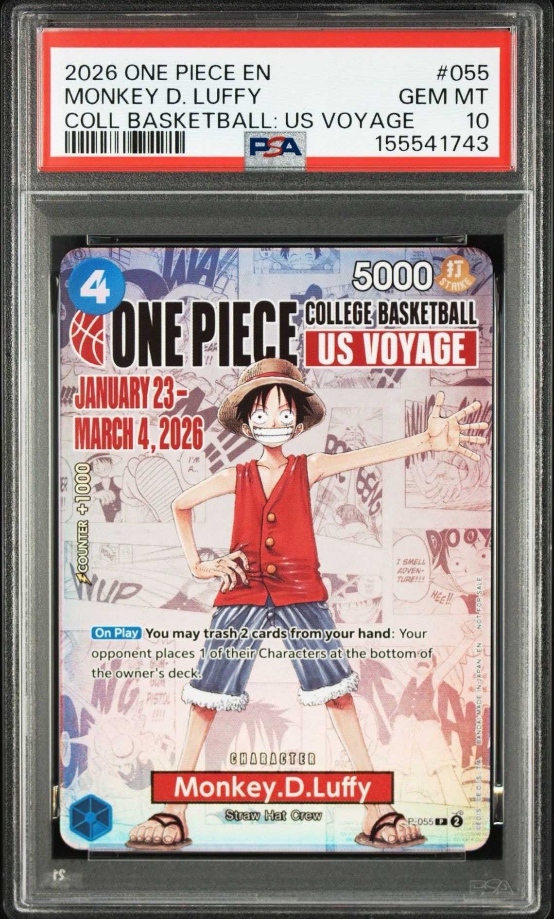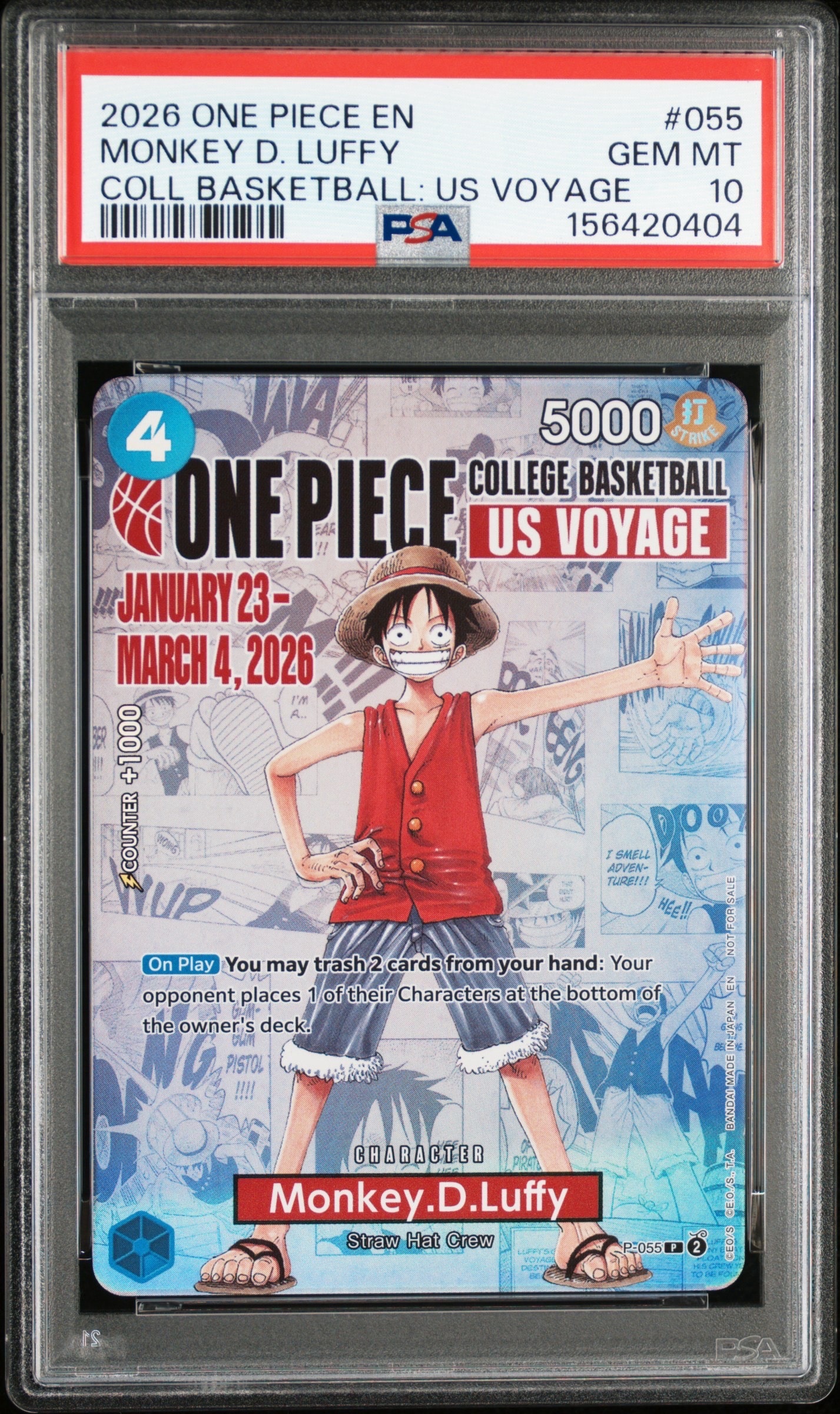 モンキー・D・ルフィ:P (開封済) [P-055]【英語版】(プロモーションカード「ワンピース カレッジ バスケットボール:USボヤージュ」)