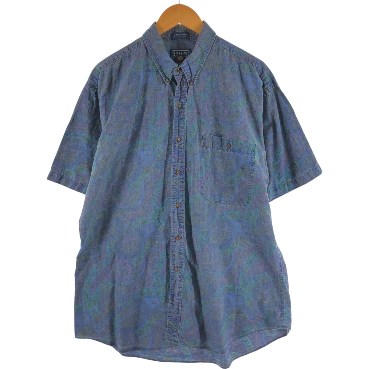 古着 80年代 ラルフローレン Ralph Lauren CHAPS チャップス 総柄 半袖 ボタンダウンシャツ メンズL相当 ヴィンテージ/eaa539473