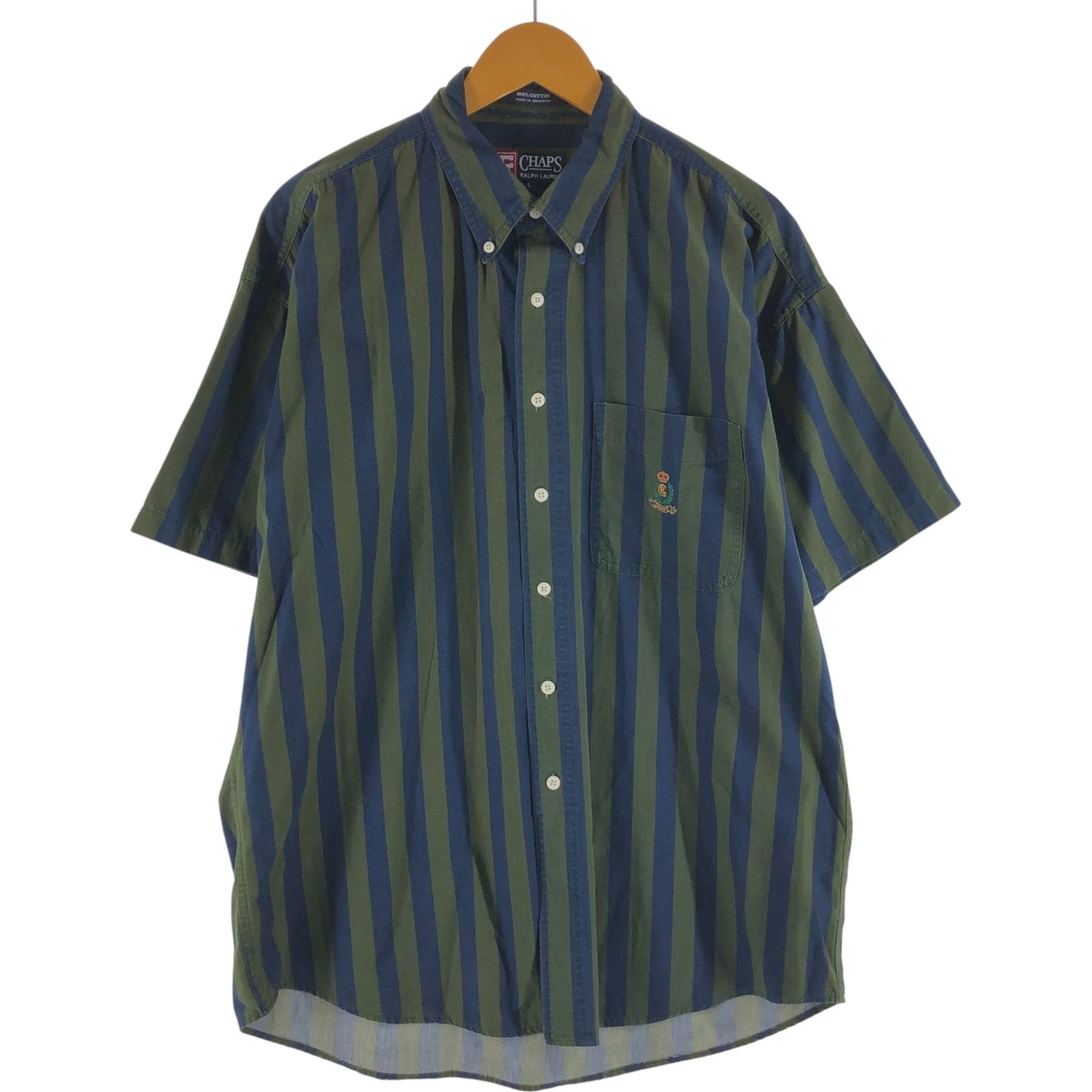 古着 90年代 ラルフローレン Ralph Lauren CHAPS チャップス 半袖 ボタンダウン ストライプシャツ メンズL相当 ヴィンテージ/eaa539472