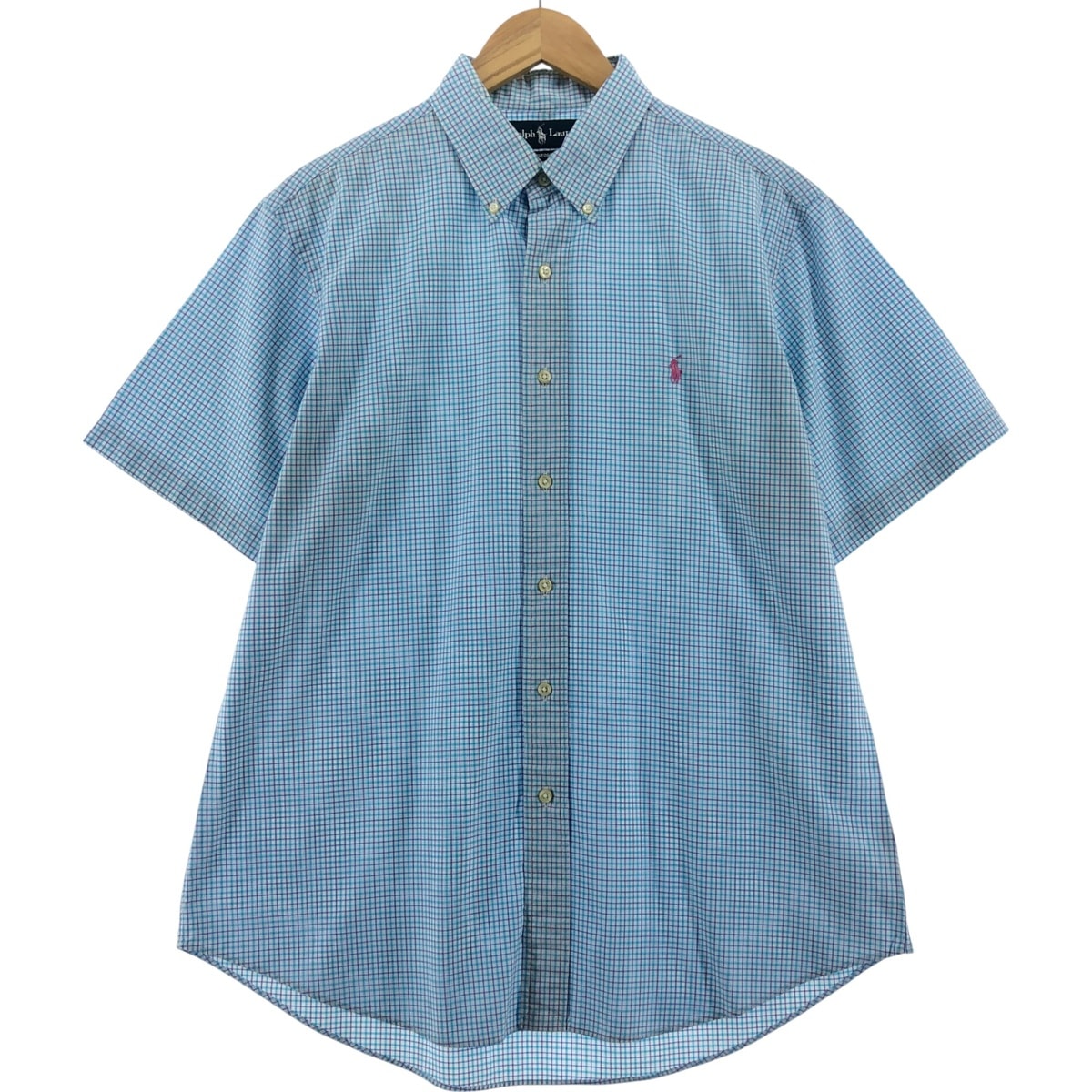 古着 ラルフローレン Ralph Lauren CUSTOM FIT 半袖 ボタンダウン チェックシャツ メンズL相当/eaa536072
