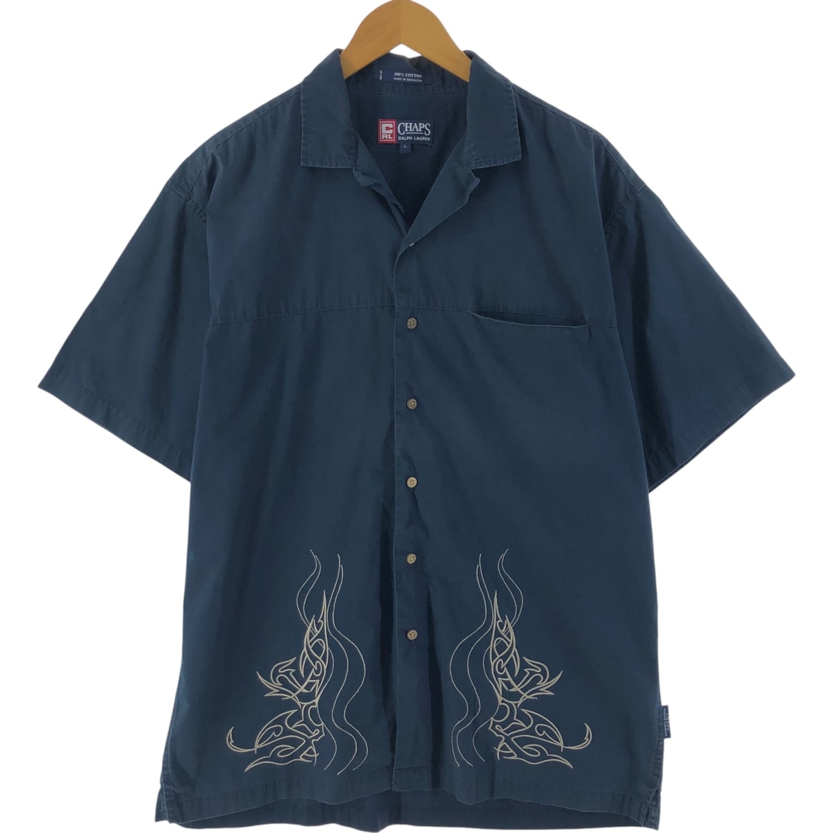 古着 90年代 ラルフローレン Ralph Lauren CHAPS チャップス トライバル柄 半袖 オープンカラー コットンシャツ メンズL相当/eaa534589