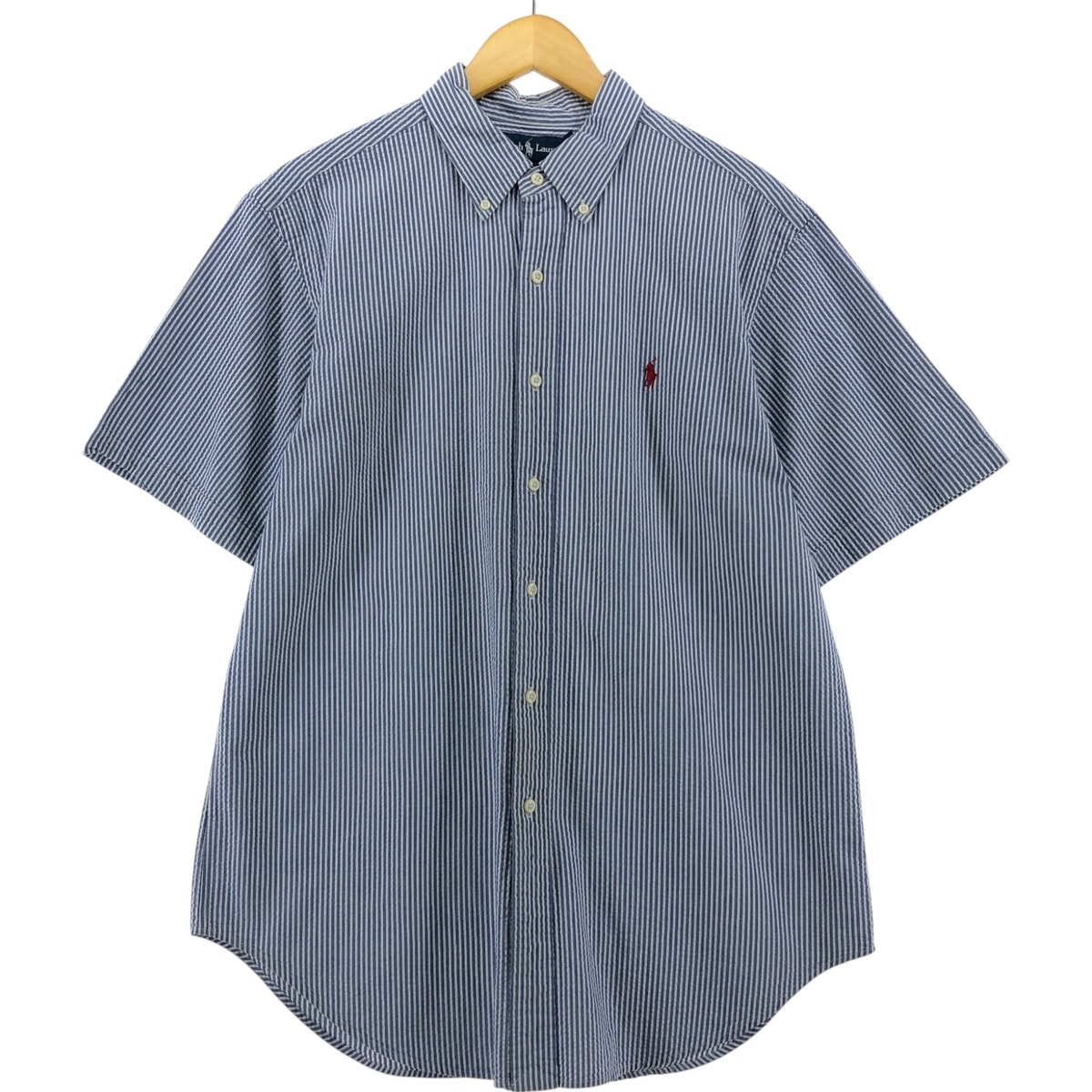 古着 ラルフローレン Ralph Lauren CLASSIC FIT クラシックフィット シアサッカー 半袖 ボタンダウン ストライプシャツ メンズL相当/eaa535579