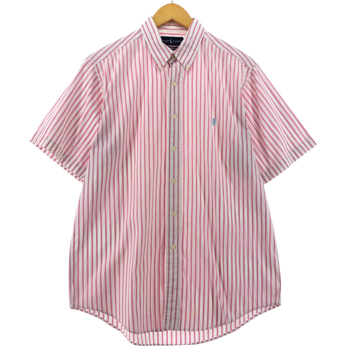 古着 ラルフローレン Ralph Lauren CUSTOM FIT 半袖 ボタンダウン ストライプシャツ メンズL相当/eaa535578