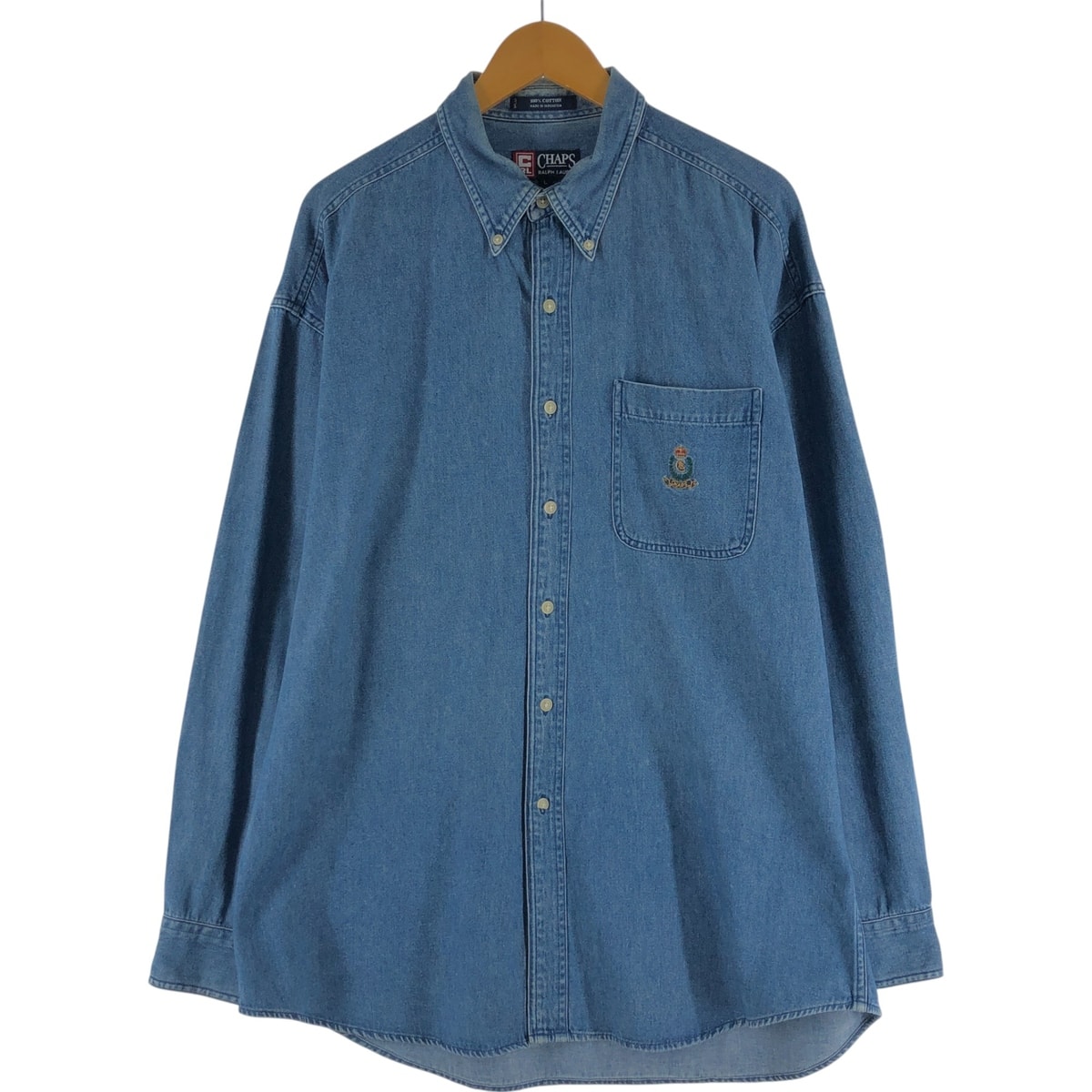 古着 90年代 ラルフローレン Ralph Lauren CHAPS チャップス 長袖 ボタンダウンデニムシャツ メンズL相当 ヴィンテージ/eaa541041