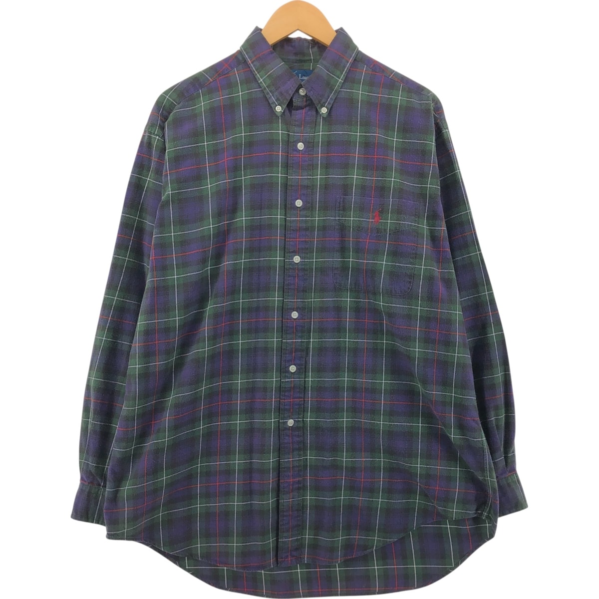 古着 ラルフローレン Ralph Lauren 長袖 ボタンダウン ライトネルチェックシャツ メンズL相当 ヴィンテージ/eaa542667