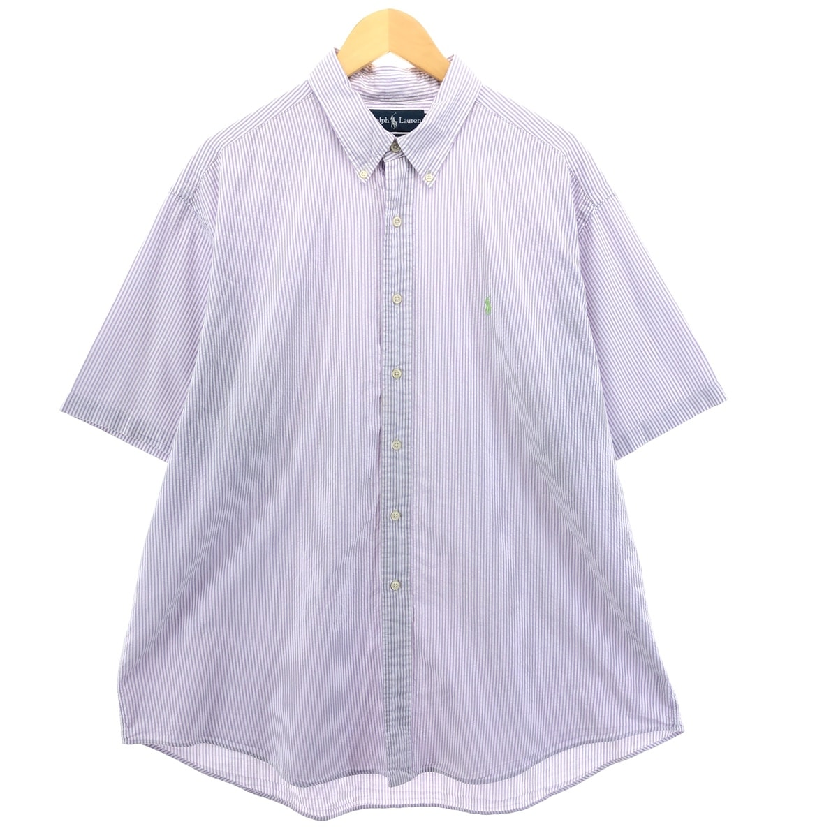 古着 ラルフローレン Ralph Lauren CLASSIC FIT シアサッカー 半袖 ボタンダウン ストライプシャツ メンズXXL相当/eaa551834