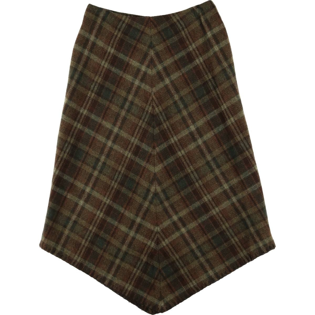 古着 ラルフローレン Ralph Lauren LAUREN ローレン PETITE チェック柄 イレギュラーヘム ウール ロング Aラインスカート レディースL相当/eaa583590