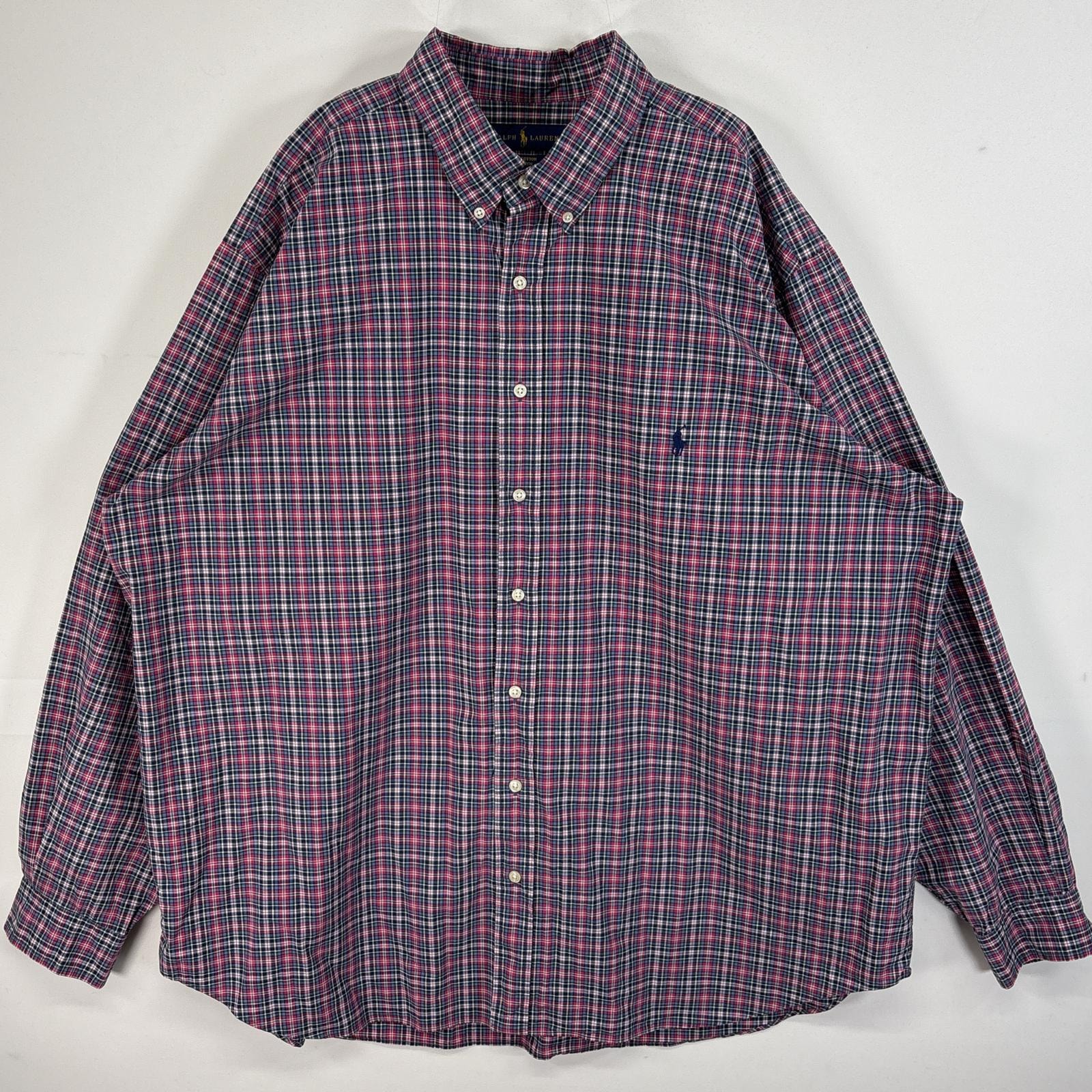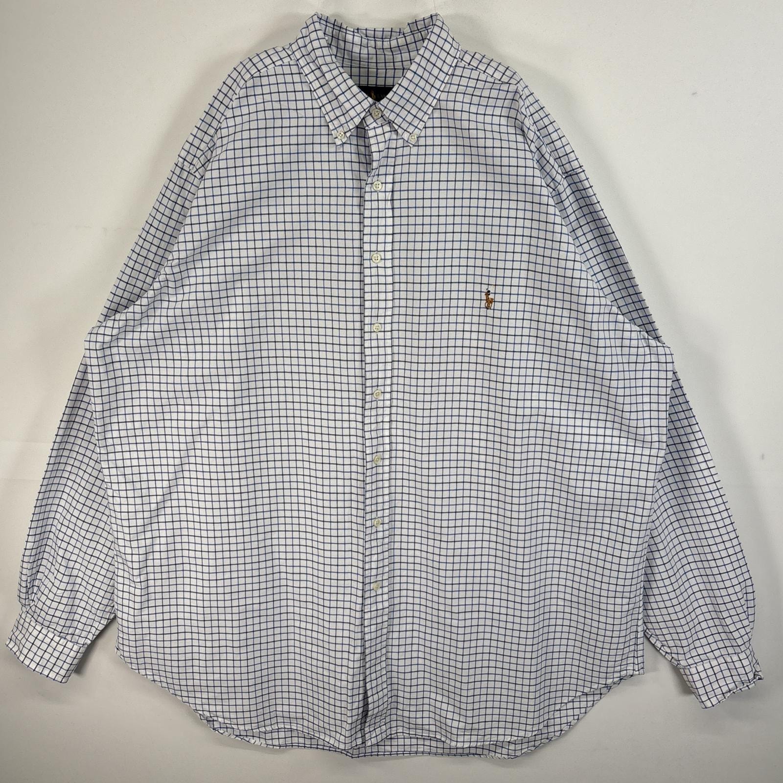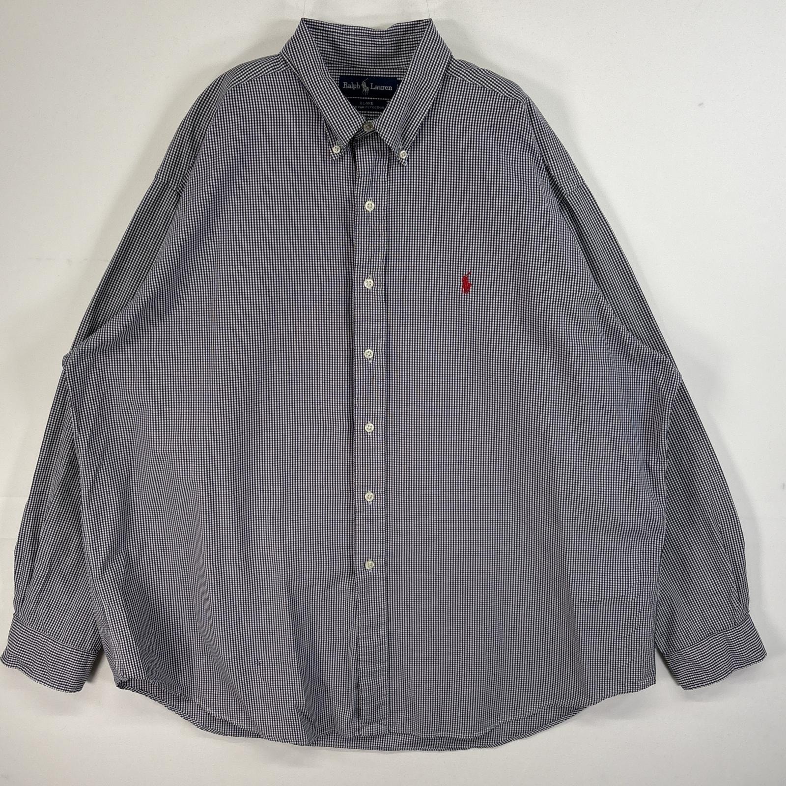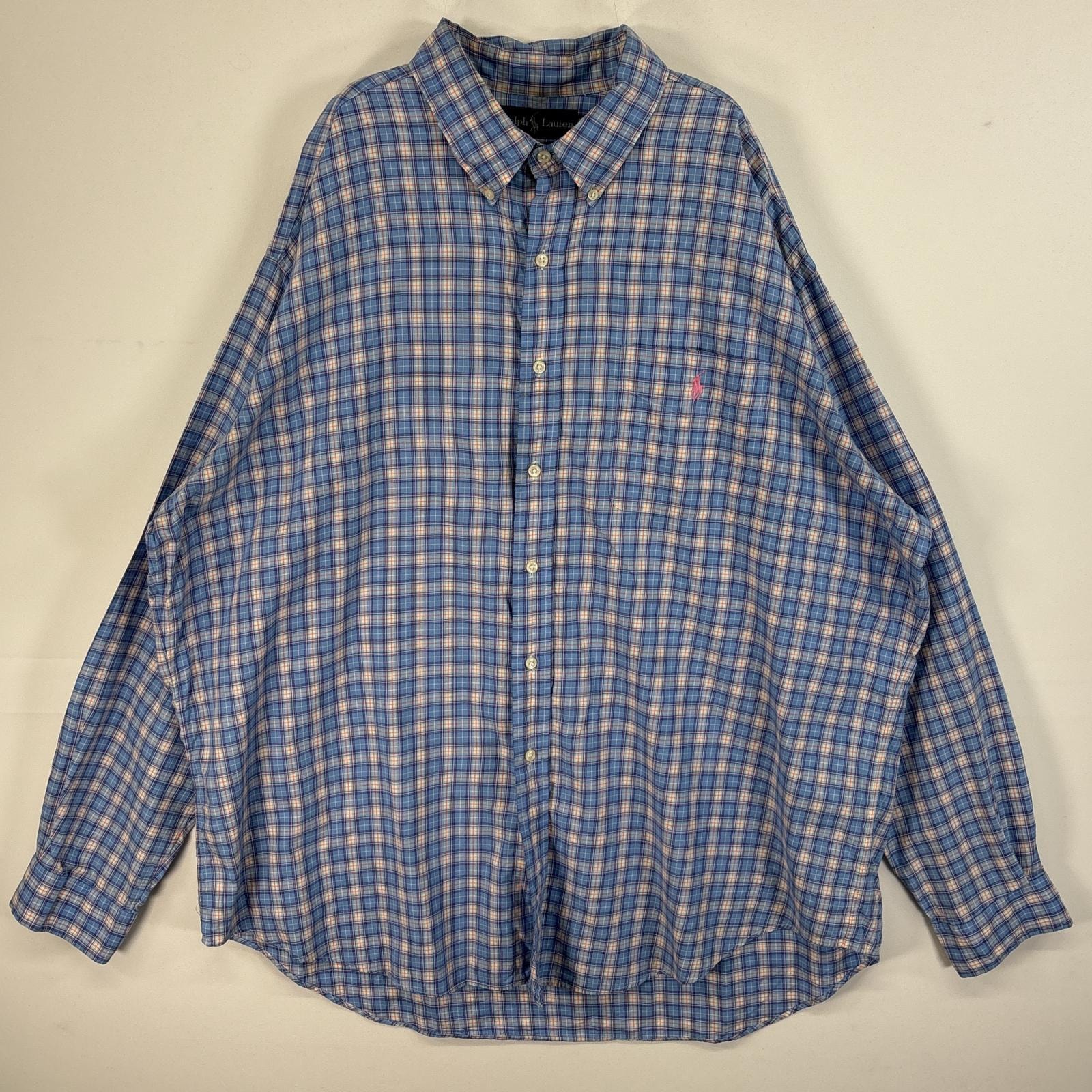 古着 ラルフローレン RALPH LAUREN 長袖シャツ ボタンダウン ロゴ 刺繍 大きいサイズ 2XLT ブルー系 チェック メンズ
