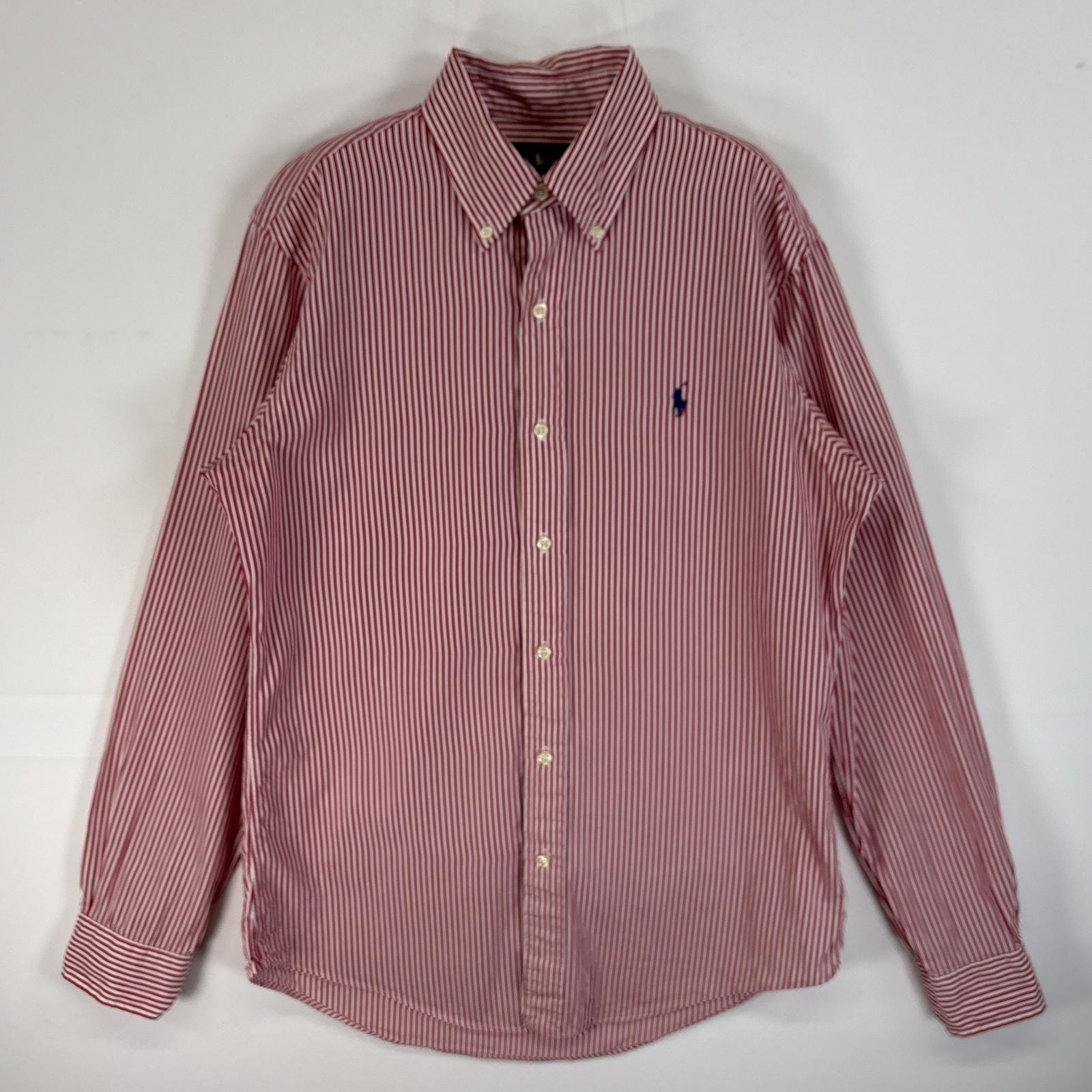 古着 ラルフローレン RALPH LAUREN 長袖シャツ ロゴ 刺繍 ボタンダウン S レッド系 ストライプ メンズ