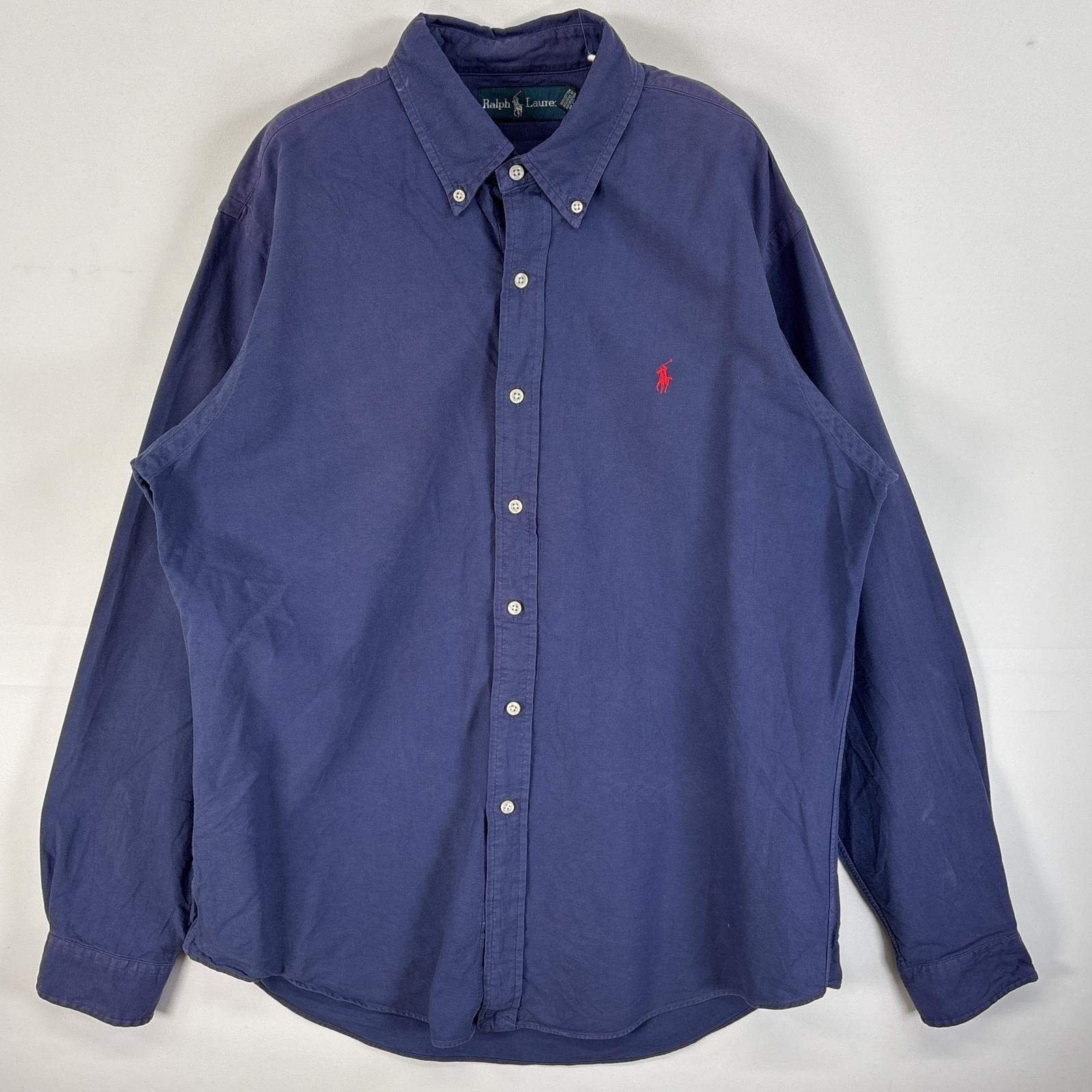 古着 ラルフローレン RALPH LAUREN 長袖シャツ ロゴ 刺繍 ボタンダウン L パープル系 無地 メンズ