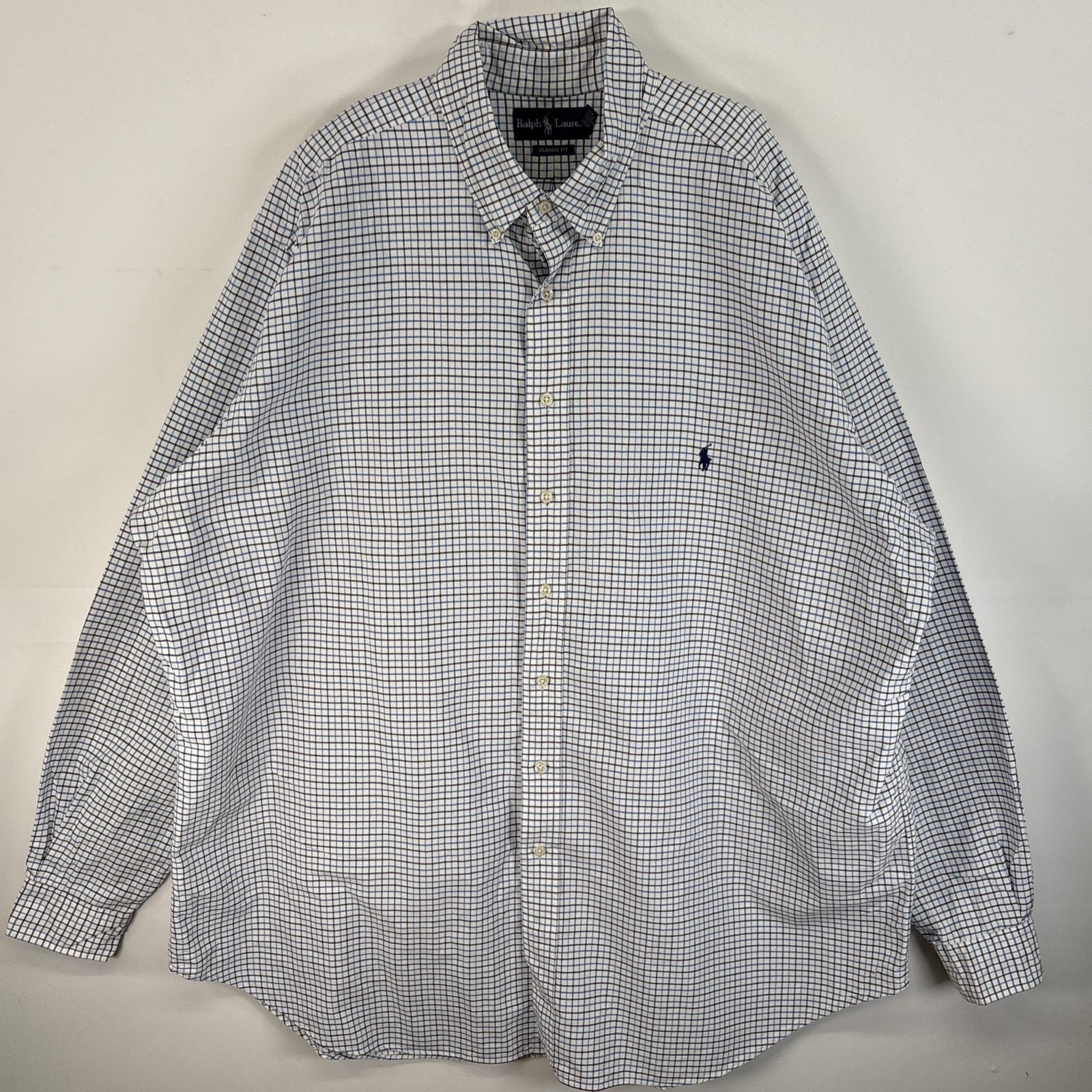 古着 ラルフローレン RALPH LAUREN 長袖シャツ チェック ロゴ 刺繍 ボタンダウンシャツ 2XLT ホワイト系 マルチカラー メンズ