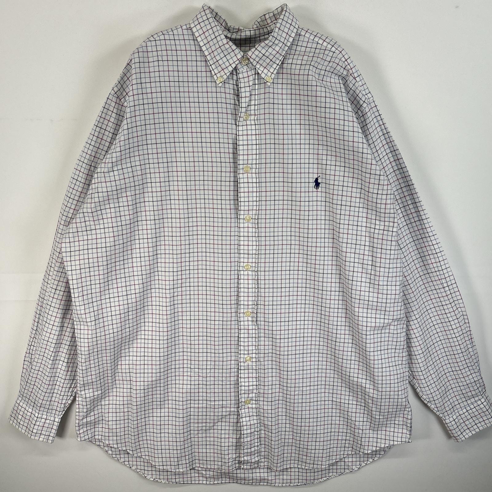 古着 ラルフローレン RALPH LAUREN 長袖シャツ チェック 大きいサイズ 薄手 ロゴ 刺繍 ボタンダウンシャツ XLT ホワイト系 マルチカラー メンズ