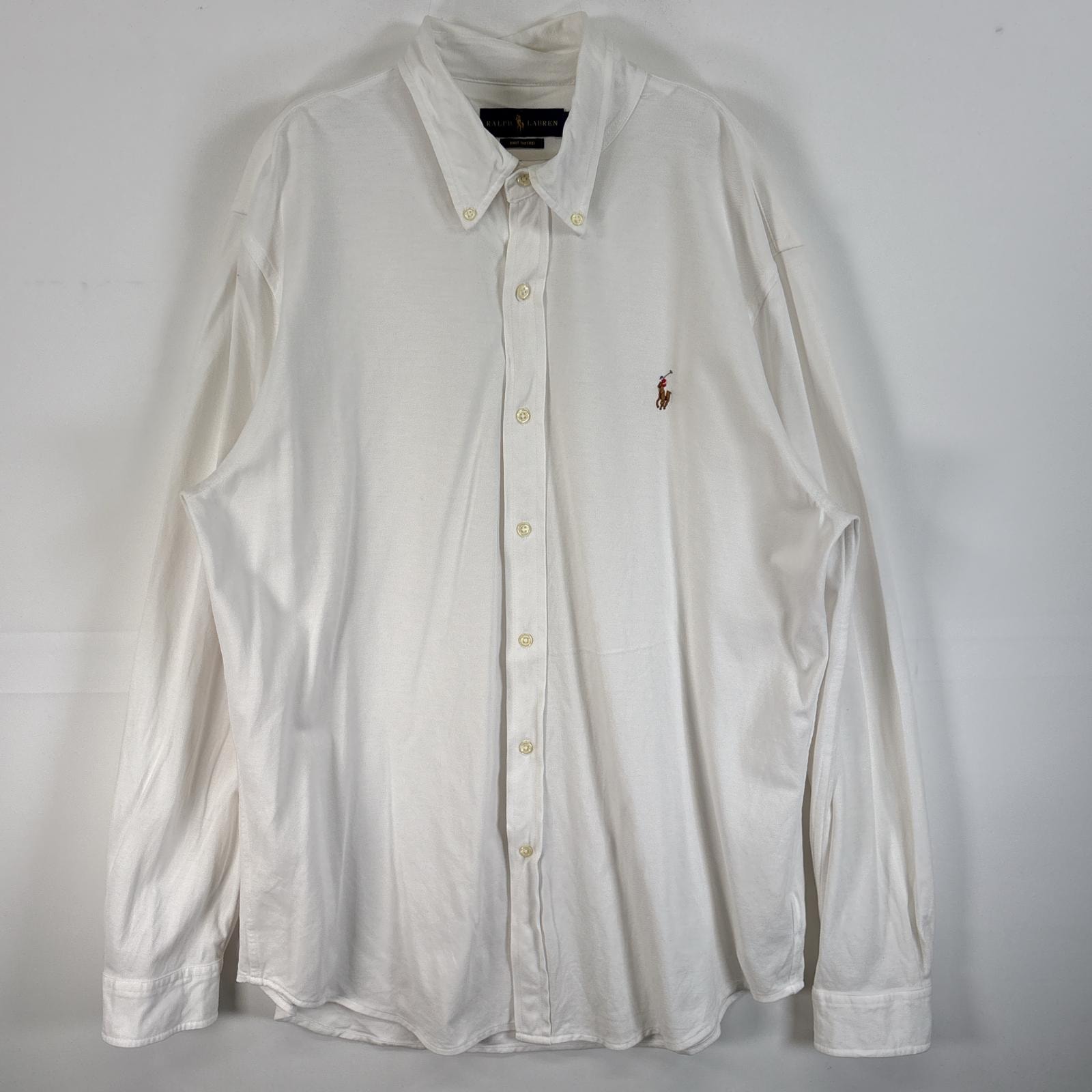 古着 ラルフローレン RALPH LAUREN 長袖シャツ ロゴ 刺繍 大きいサイズ KNIT OXFORD XL ホワイト 無地 メンズ