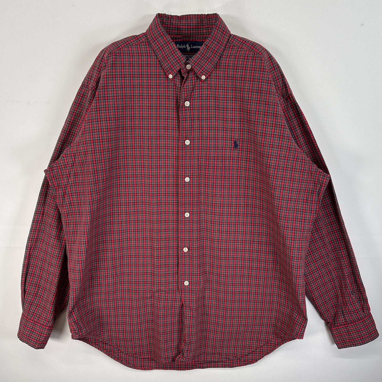 古着 90's/90年代 ラルフローレン RALPH LAUREN 長袖シャツ ロゴ 刺繍 大きいサイズ ボタンダウンシャツ 17 1/2 XL-2XL レッド系 チェック メンズ