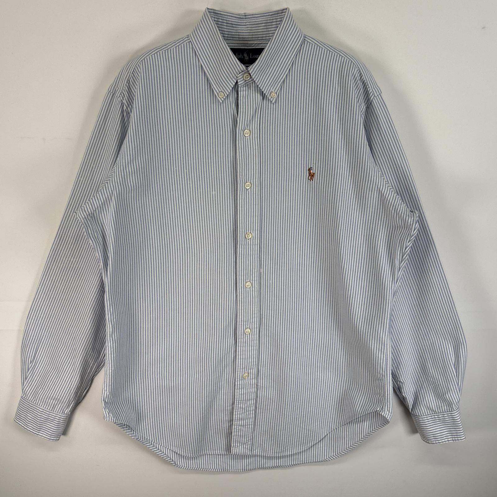 古着 90's/90年代 ラルフローレン RALPH LAUREN 長袖シャツ ワンポイント ロゴ 刺繍 ボタンダウンシャツ M ブルー系 ストライプ メンズ
