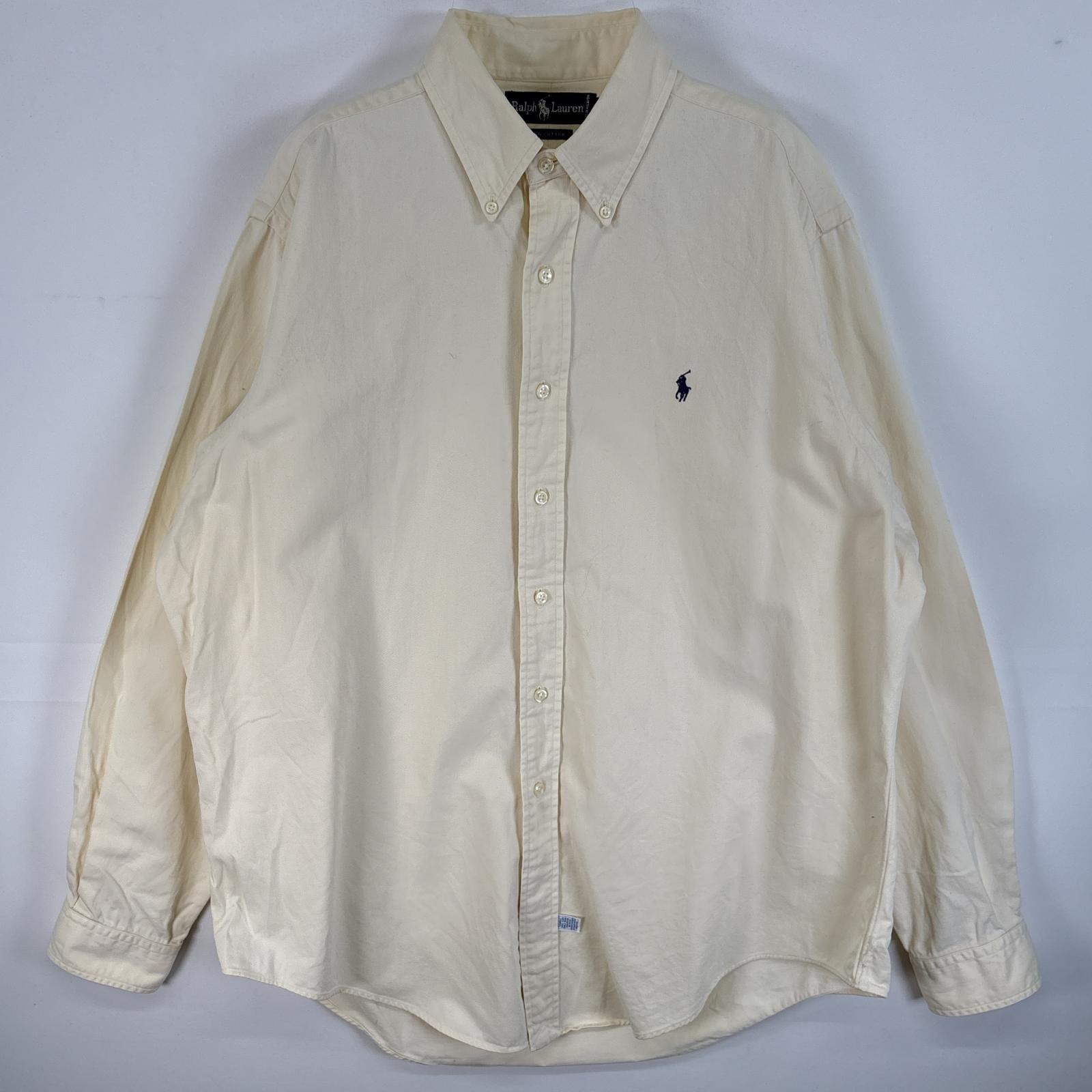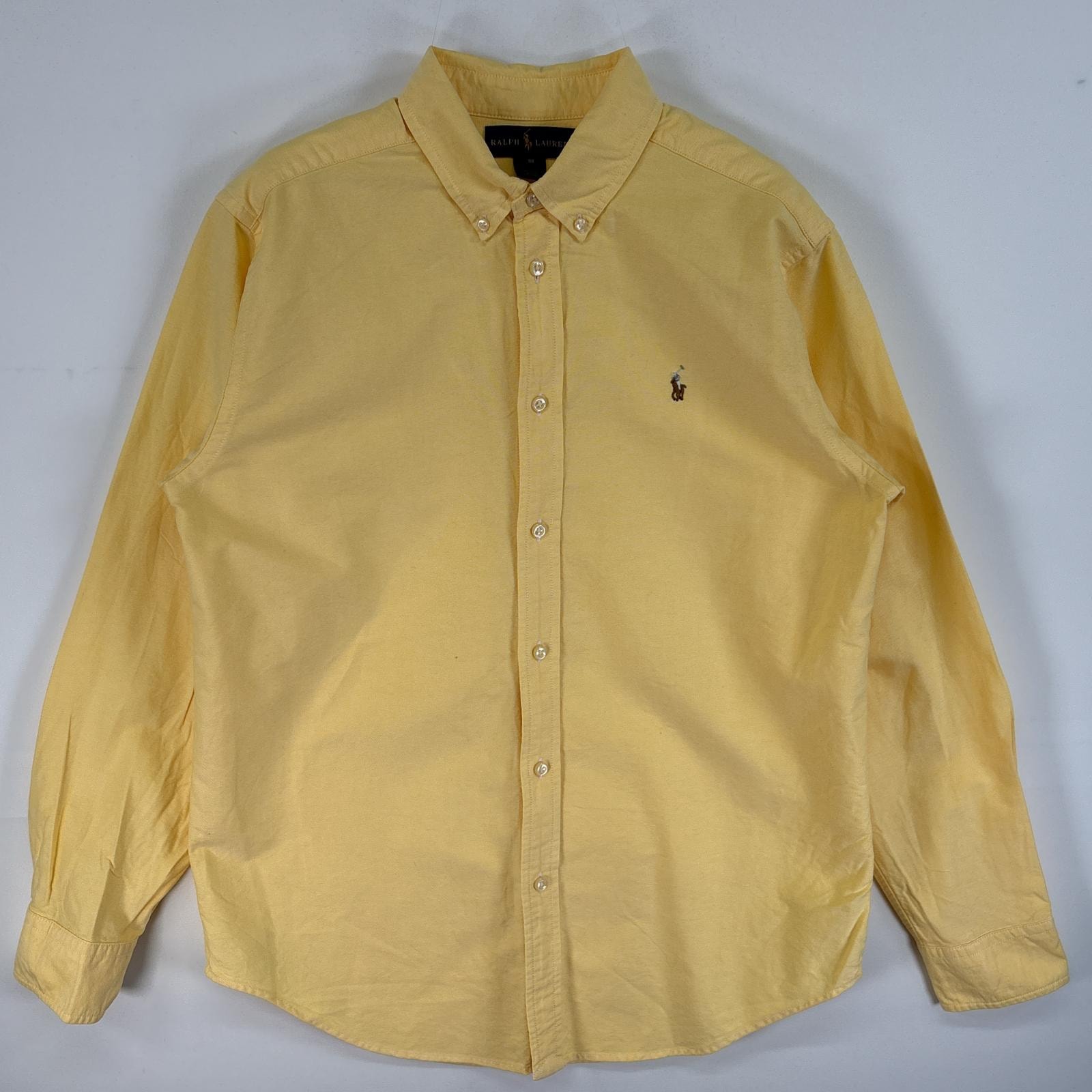 古着 ラルフローレン RALPH LAUREN 長袖シャツ ロゴ 刺繍 ボタンダウンシャツ カラーシャツ 54846 イエロー 無地 メンズ