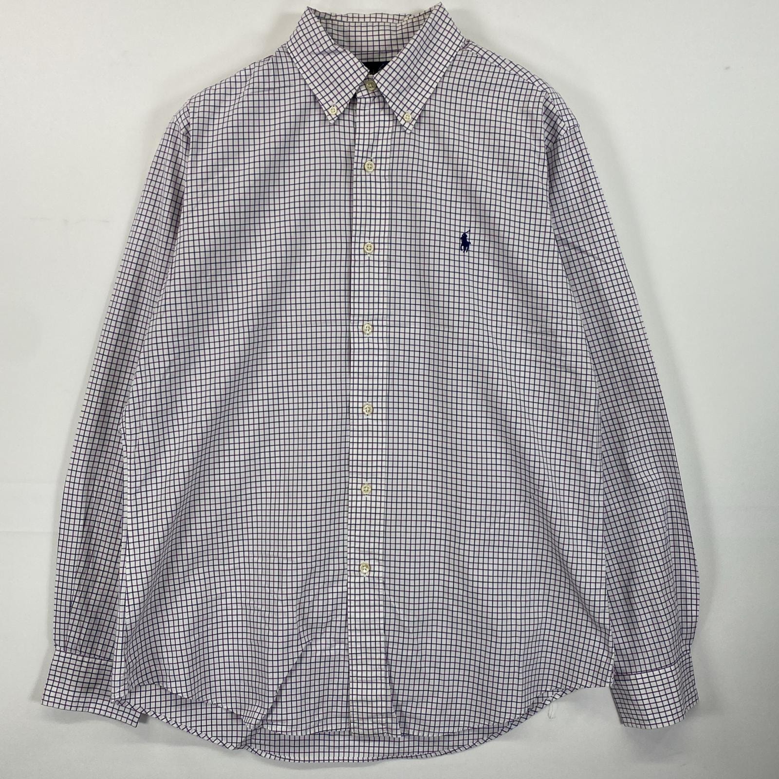 古着 ラルフローレン RALPH LAUREN 長袖シャツ ボタンダウンシャツ ワンポイント ロゴ 刺繍 XL(18-20) パープル系 チェック メンズ