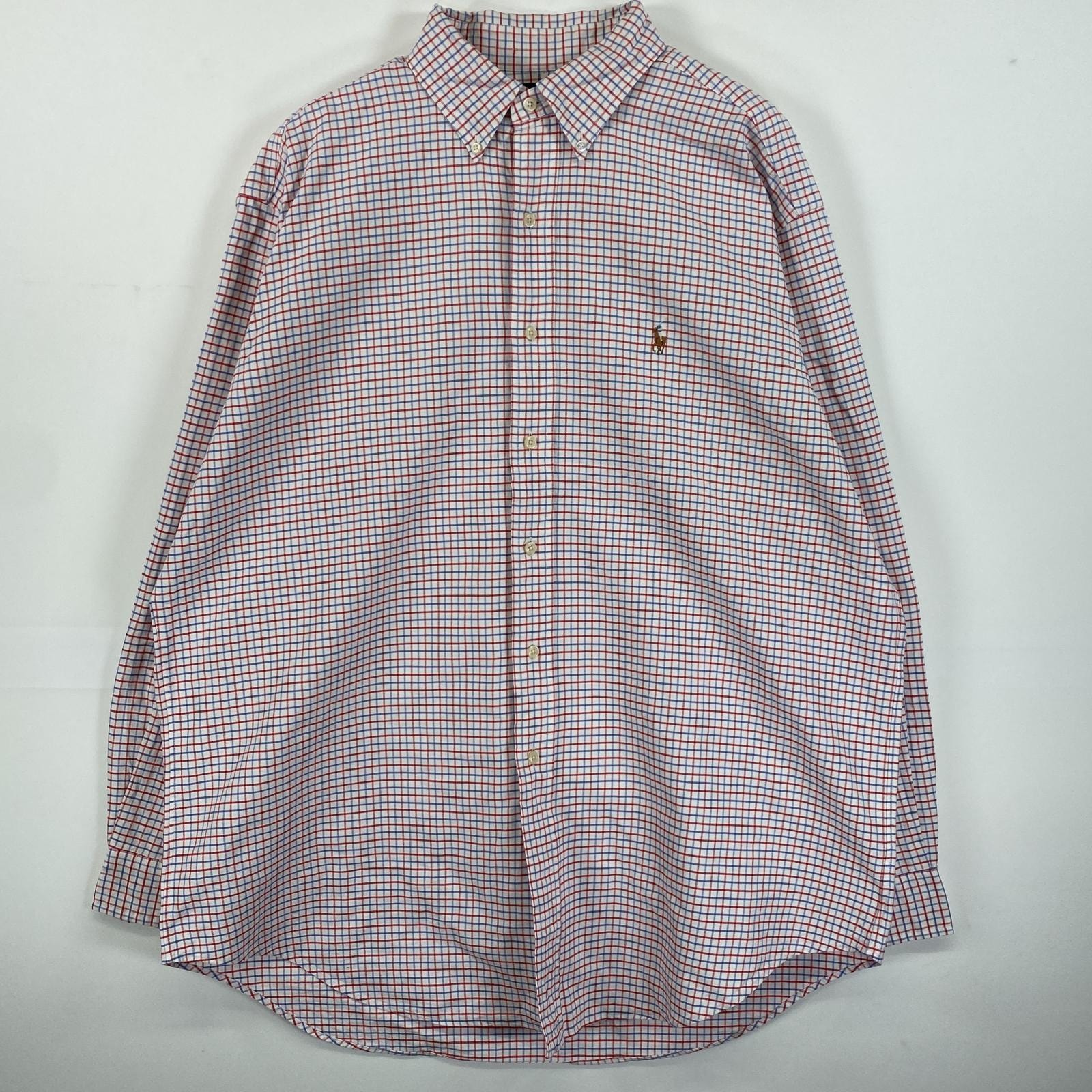 古着 ラルフローレン RALPH LAUREN 長袖シャツ ボタンダウンシャツ ワンポイント ロゴ 刺繍 肉厚 XL レッド系 マルチカラー メンズ