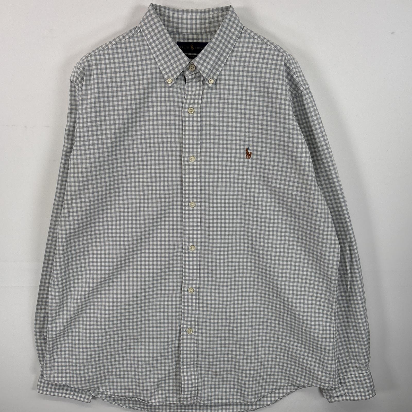 古着 ラルフローレン RALPH LAUREN 長袖シャツ ボタンダウンシャツ ワンポイント ロゴ 刺繍 大きいサイズ XL グレー系 チェック メンズ