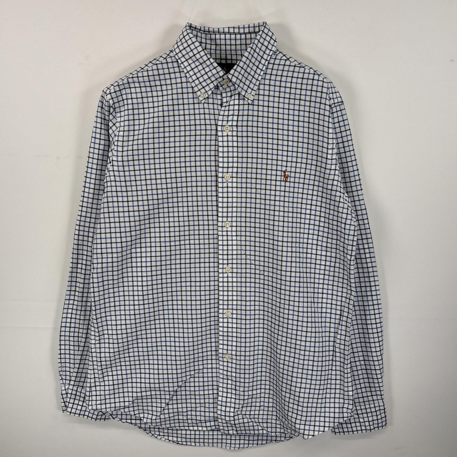 古着 ラルフローレン RALPH LAUREN 長袖シャツ ボタンダウン ワンポイントロゴ刺繍 L ブルー系 チェック メンズ