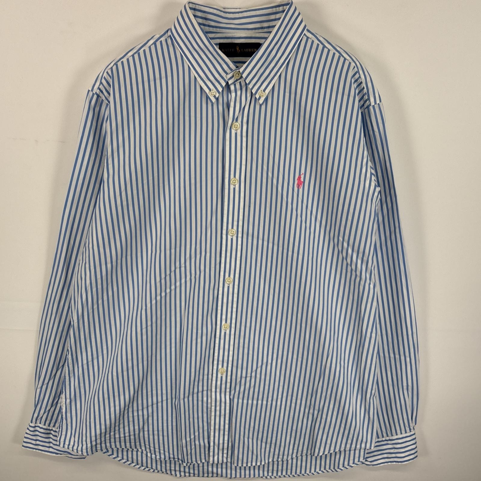 古着 ラルフローレン RALPH LAUREN 長袖シャツ ボタンダウンシャツ ワンポイント ロゴ 刺繍 大きいサイズ XL ブルー系 ストライプ メンズ
