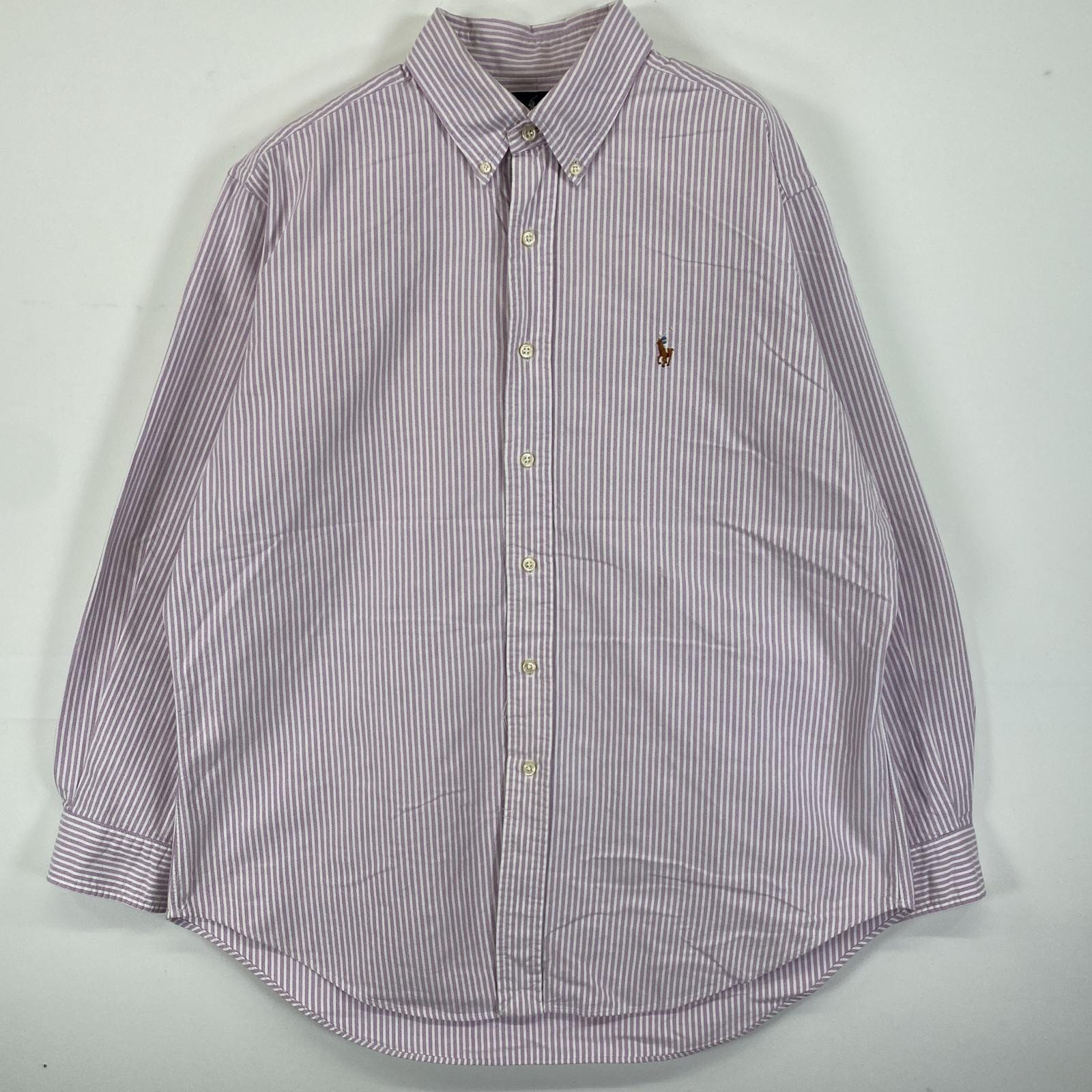 古着 90's/90年代 ラルフローレン RALPH LAUREN 長袖シャツ ボタンダウン ロゴ刺繍 ワンポイントロゴ 16 2/1 パープル系 ストライプ メンズ