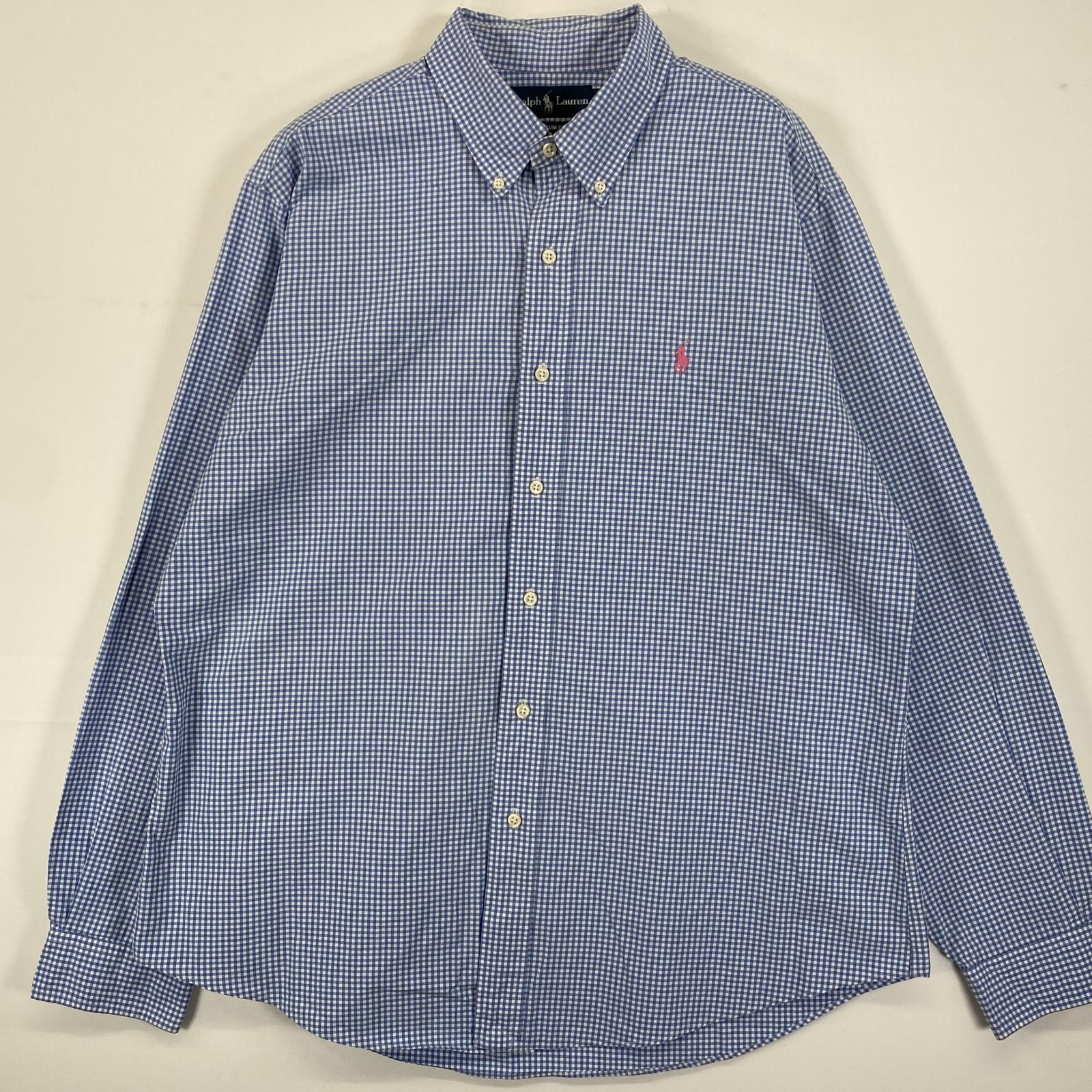 古着 ラルフローレン RALPH LAUREN 長袖シャツ ボタンダウン ロゴ刺繍 ワンポイントロゴ L ブルー系 チェック メンズ