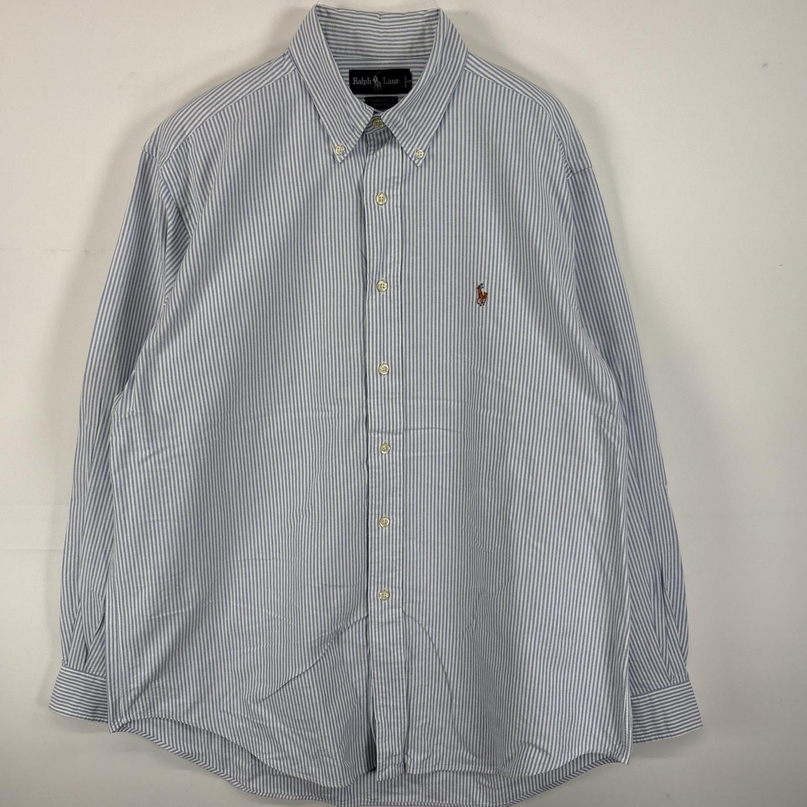 古着 ラルフローレン RALPH LAUREN 長袖シャツ ボタンダウンシャツ ワンポイント ロゴ 刺繍 大きいサイズ 16 1/2-35 L-XL ブルー系 ストライプ メンズ