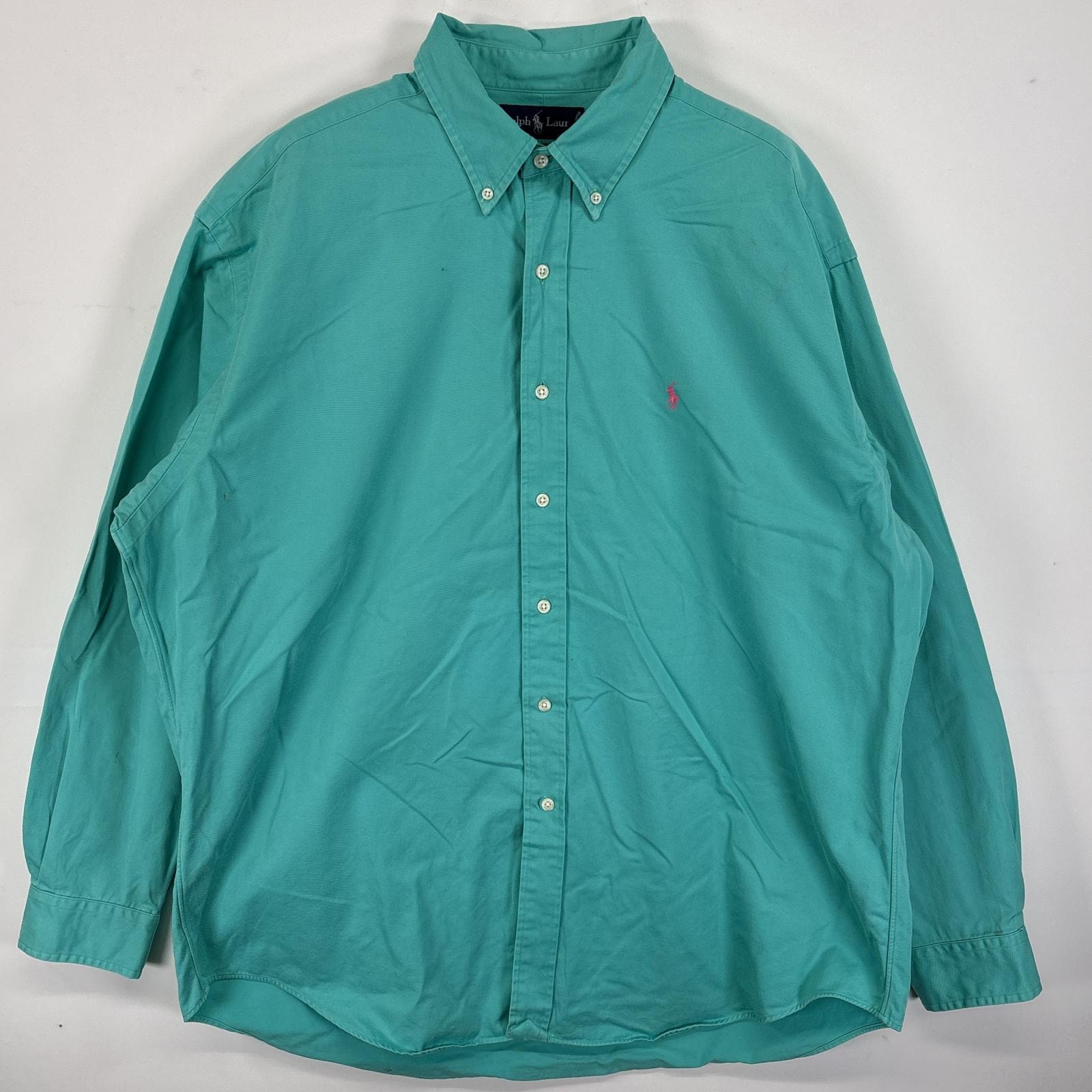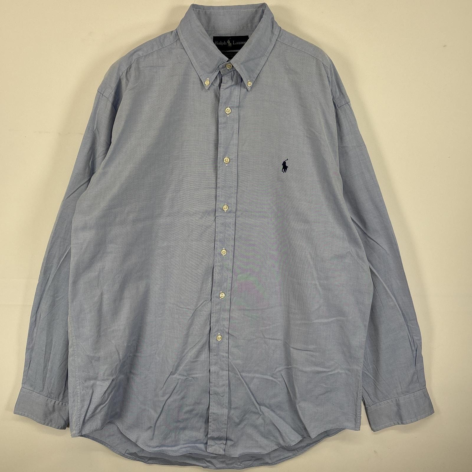古着 ラルフローレン RALPH LAUREN 長袖シャツ ボタンダウンシャツ ワンポイント ロゴ 刺繍 大きいサイズ XL ブルー系 無地 メンズ