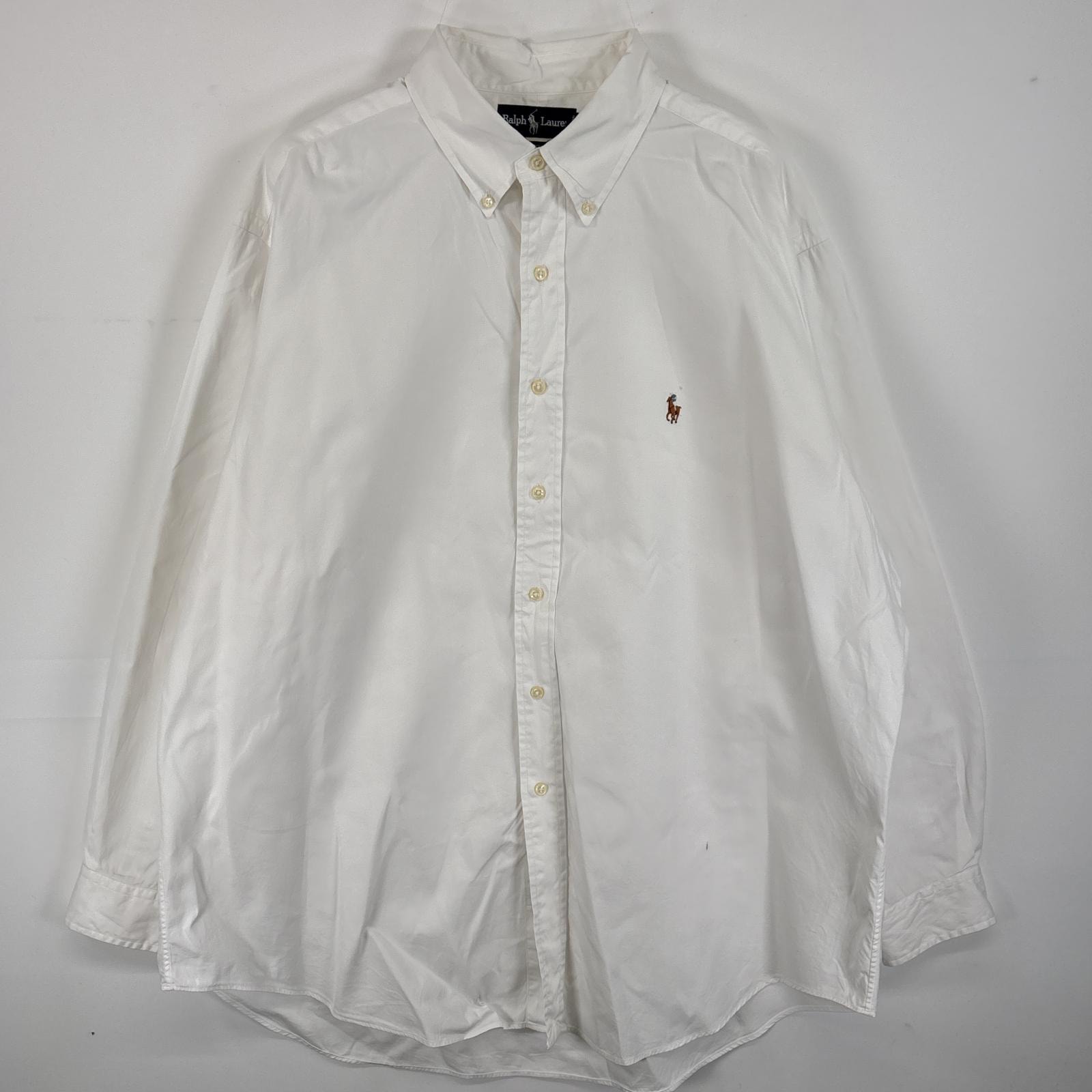 古着 ラルフローレン RALPH LAUREN 長袖シャツ ボタンダウンシャツ ワンポイント ロゴ 刺繍 大きいサイズ 18 2XL ホワイト 無地 メンズ