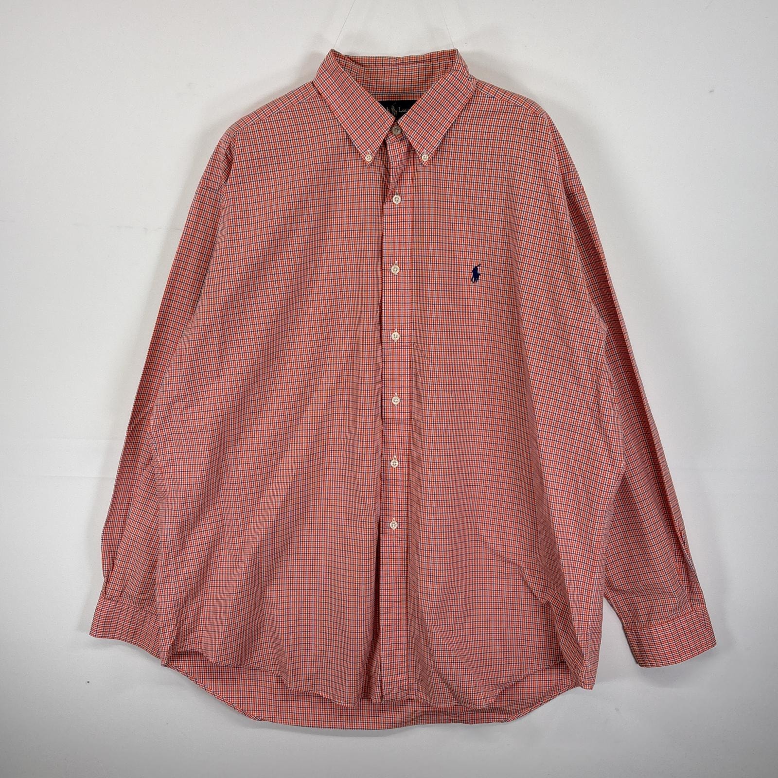 古着 ラルフローレン RALPH LAUREN 長袖シャツ ボタンダウン ワンポイントロゴ ロゴ刺繍 XL オレンジ系 無地 メンズ