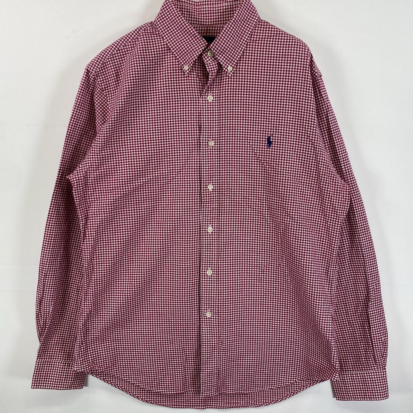 古着 ラルフローレン RALPH LAUREN 長袖シャツ ボタンダウン ロゴ刺繍 ワンポイント L レッド系 チェック メンズ