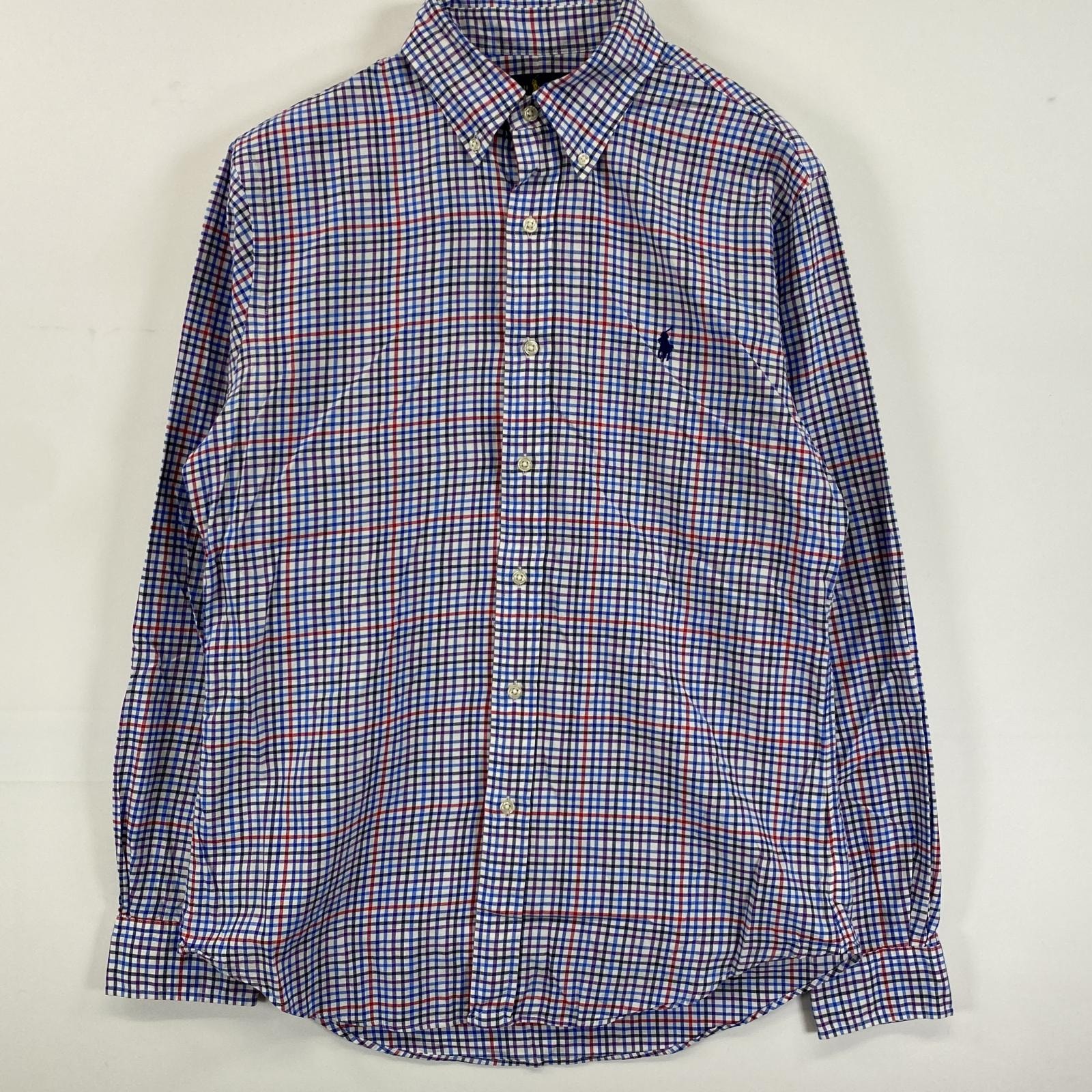 古着 ラルフローレン RALPH LAUREN 長袖シャツ ボタンダウンシャツ マルチカラー ワンポイント 刺繍 M レッド系 チェック メンズ