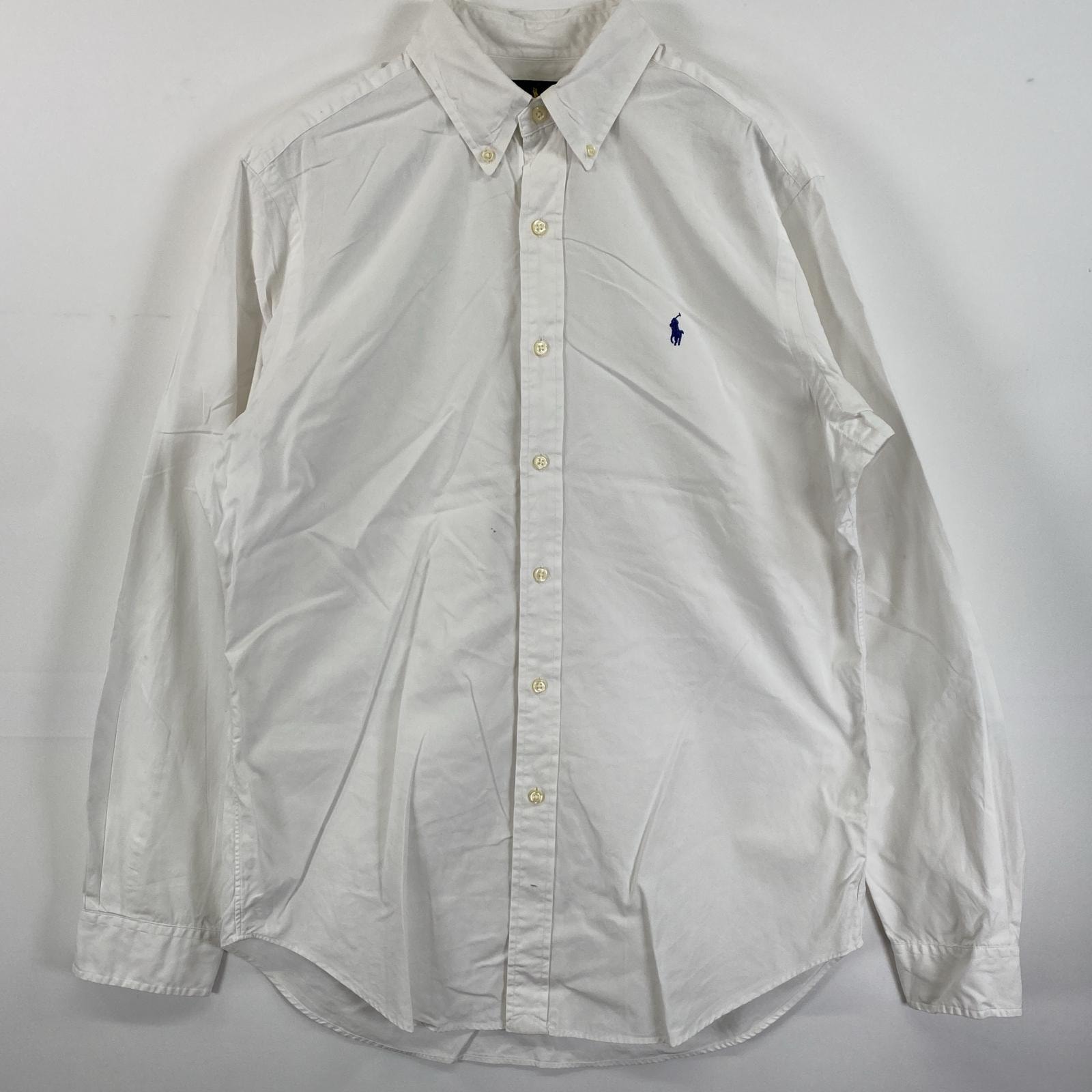 古着 ラルフローレン RALPH LAUREN 長袖シャツ ボタンダウン ロゴ刺繍 ワンポイントロゴ M ホワイト 無地 メンズ