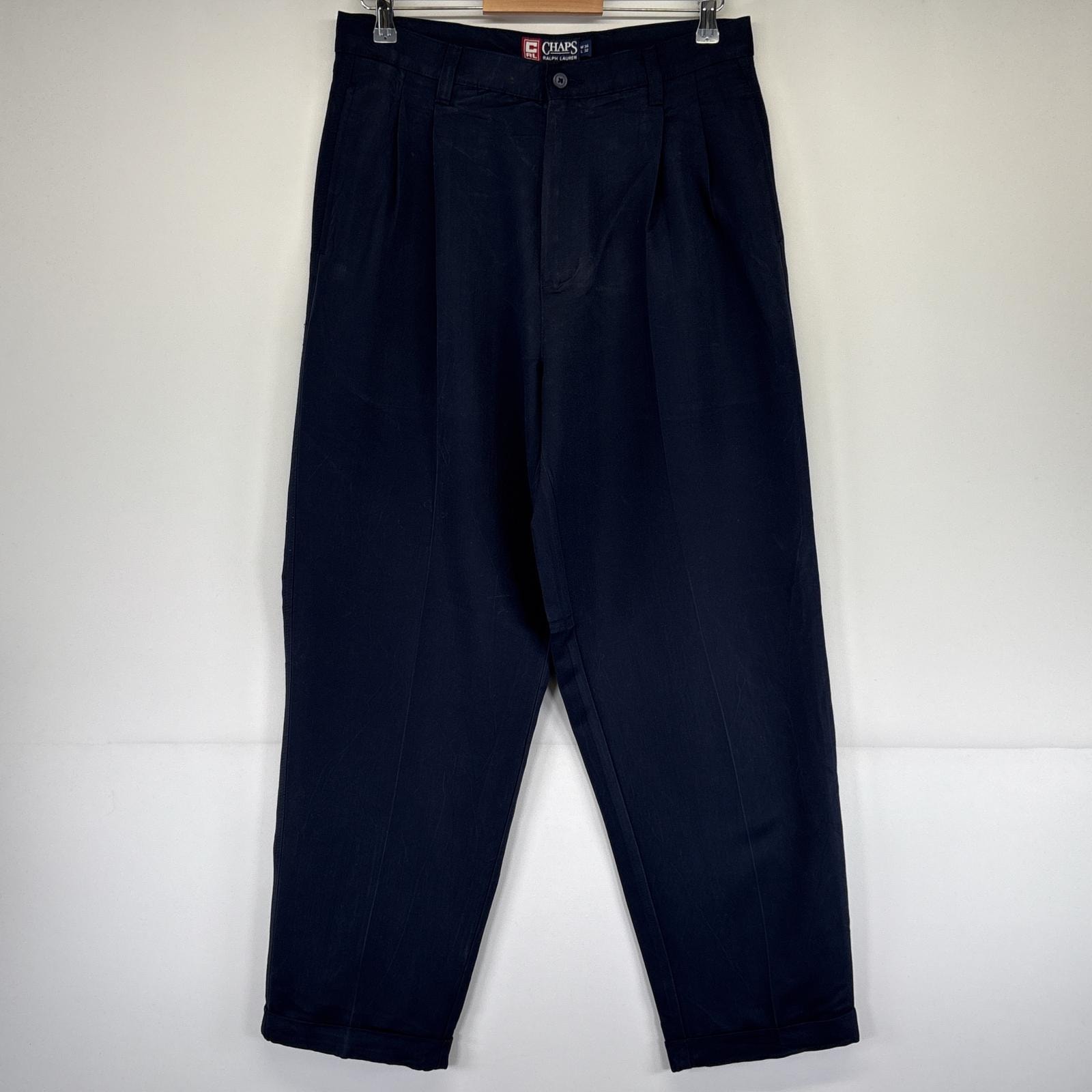 古着 チャップスラルフローレン CHAPS RALPHLAUREN スラックスパンツ テーパード ツータック センタープレス レーヨン 長ズボン w34 L32 ネイビー メンズ