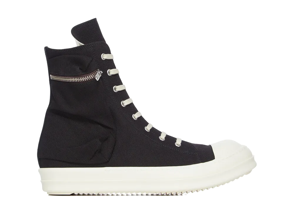 Rick Owens DRKSHDW SS26 Temple Cargo Sneaks "Black/Milk/Overdyed Denim"