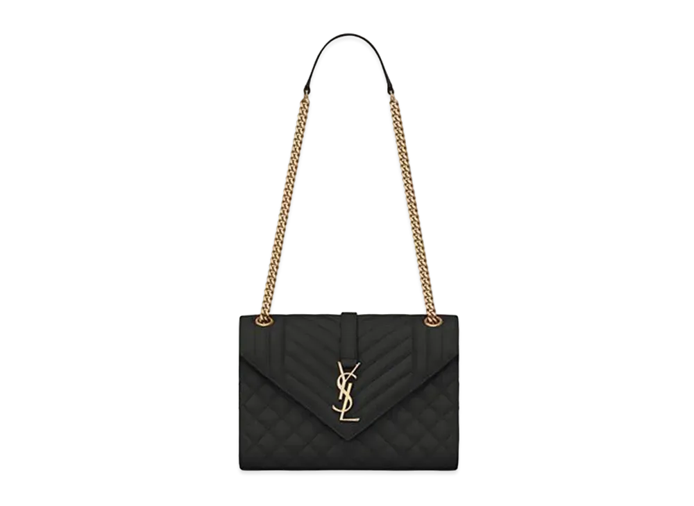 Saint Laurent Envelope Medium Bag In Mix Matelasse Grain De Poudre Embossed Leather "Black"