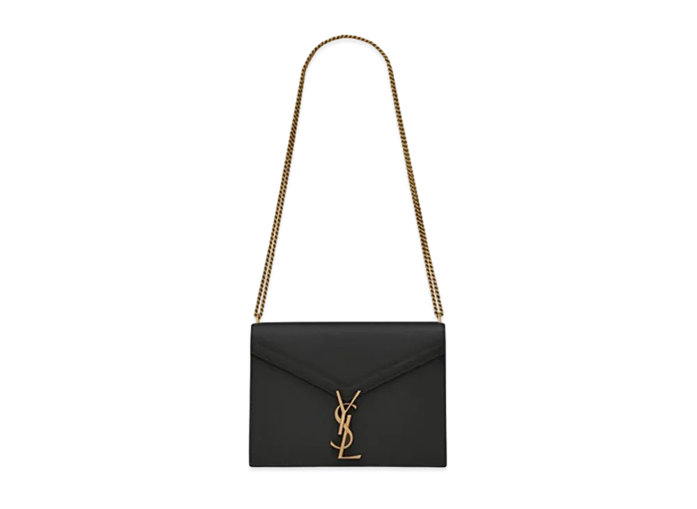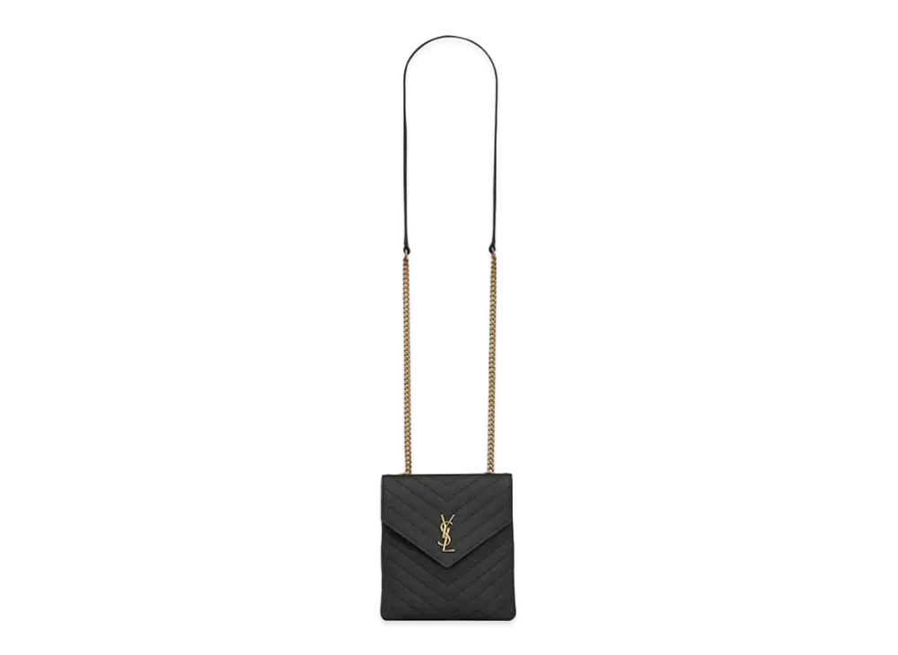 Saint Laurent Envelope Chain Wallet In Grain De Poudre Embossed Leather "Black"