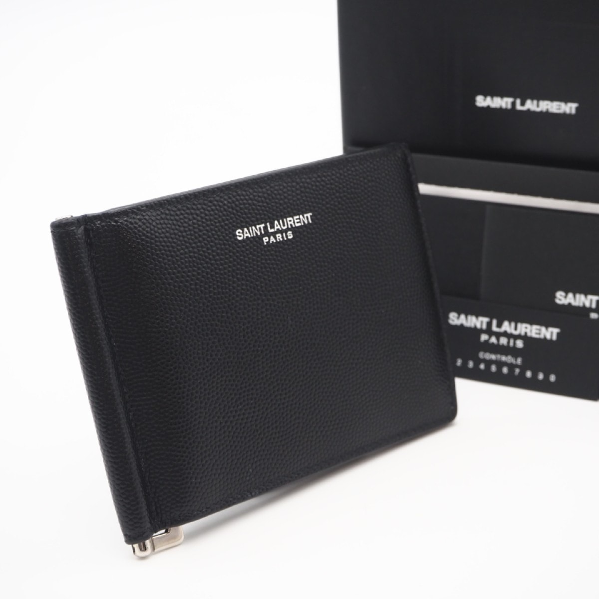 美品 SAINT LAURENT サンローラン ロゴ ビルクリップ ウォレット 378005 マネークリップ ブラック グレインレザー メンズ