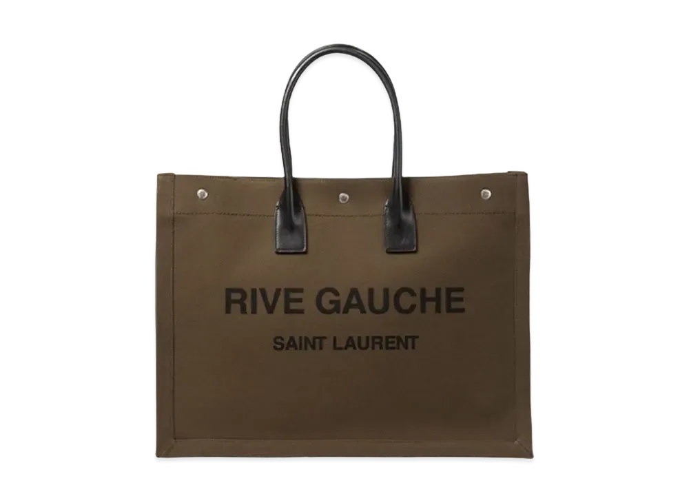 Saint Laurent Rive Gauche Large Tote Bag In Printed Canvas and Leather "Dark Kaki"
