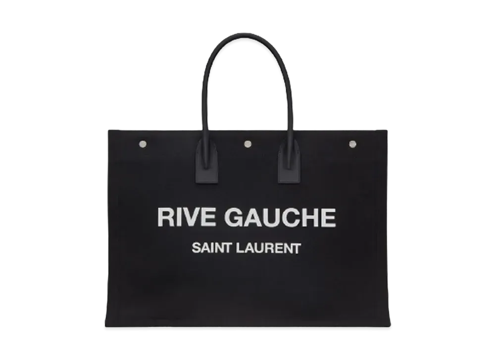 Saint Laurent Rive Gauche Large Tote Bag In Printed Canvas and Leather "Noir Et Blanc"
