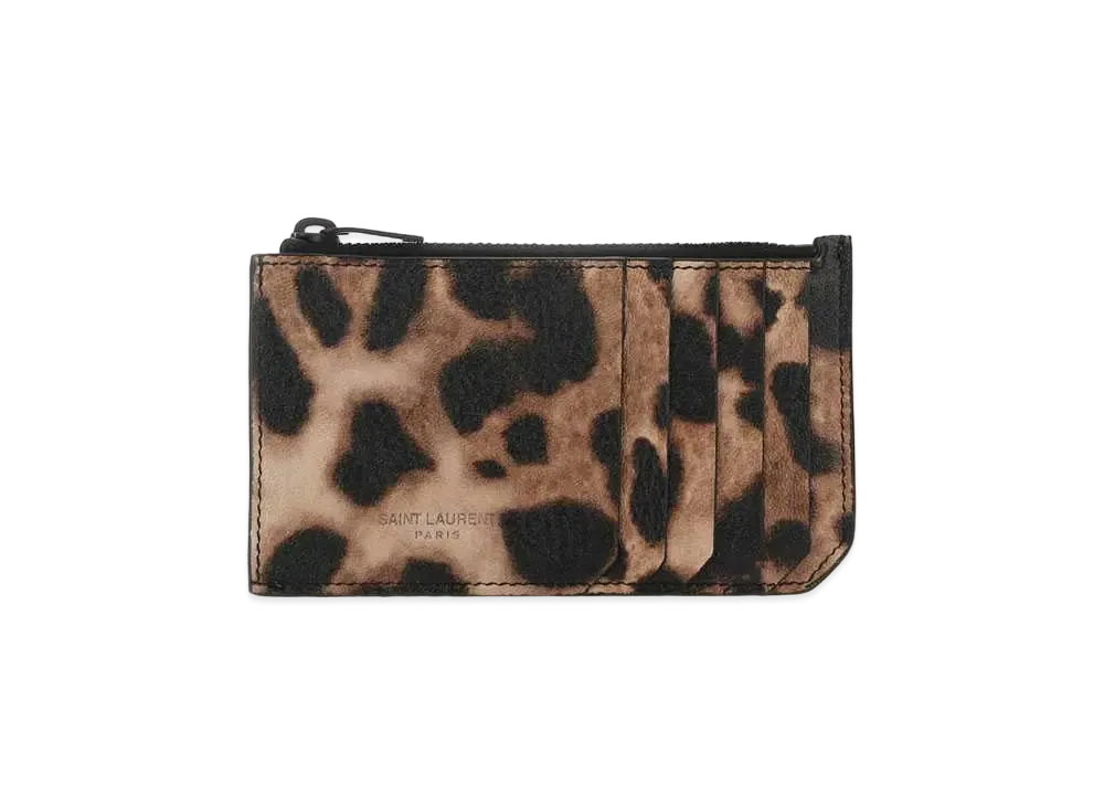 Saint Laurent Paris Fragments Zipped Card Case In Grained Leather "Beige/Brown"