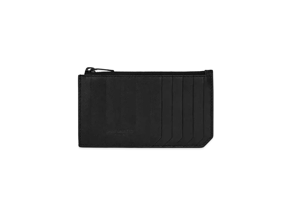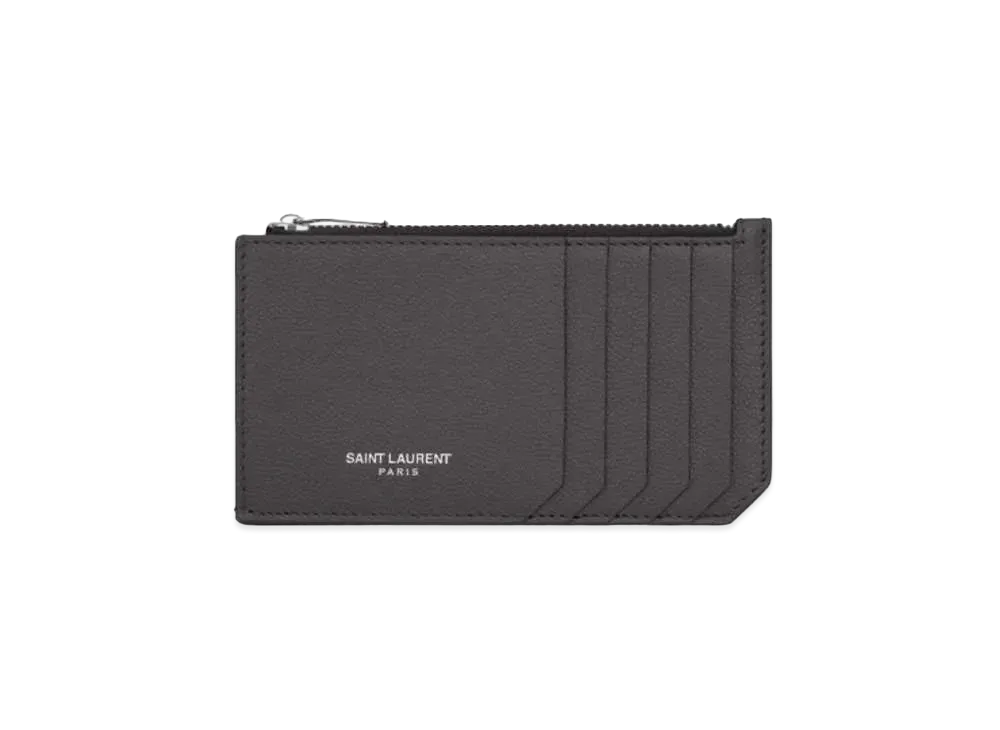Saint Laurent Paris Fragments Zipped Card Case In Grain De Poudre Embossed Leather "Storm"