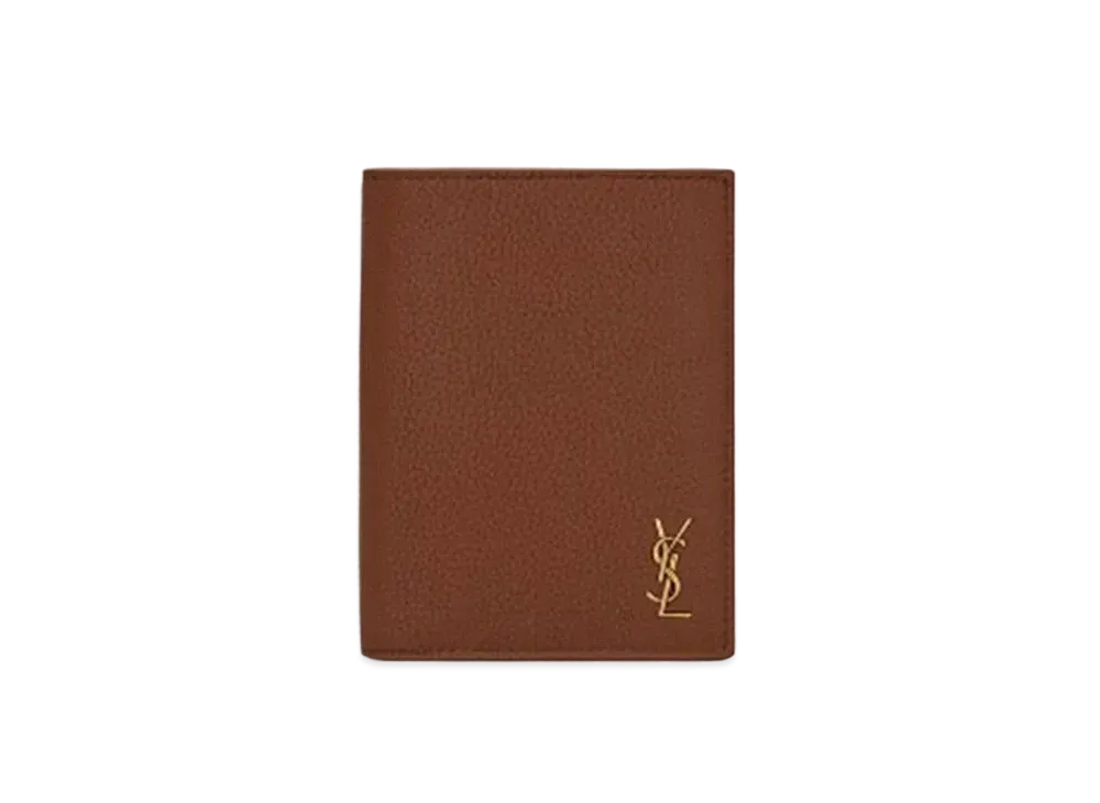 Saint Laurent Tiny Cassandre Credit Card Wallet In Grained Leather "Toasted Brown"
