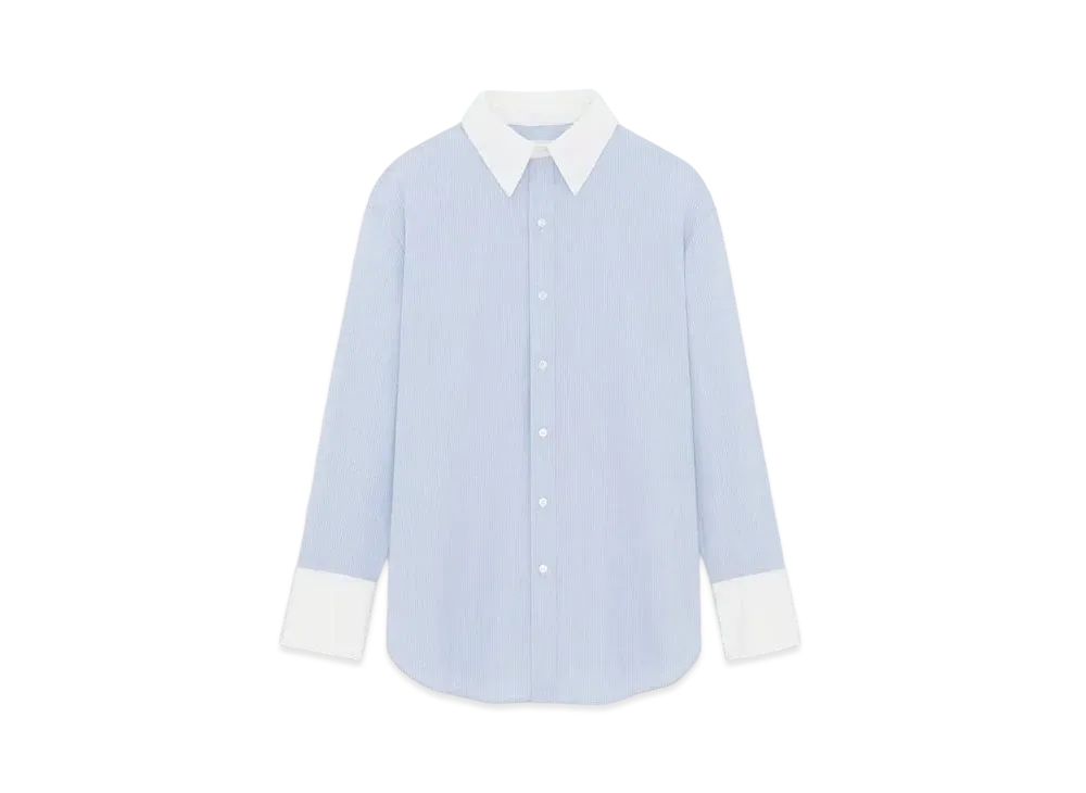 Saint Laurent Women's Winchester Boyfriend Shirt in Cotton "Bleu Blanc"