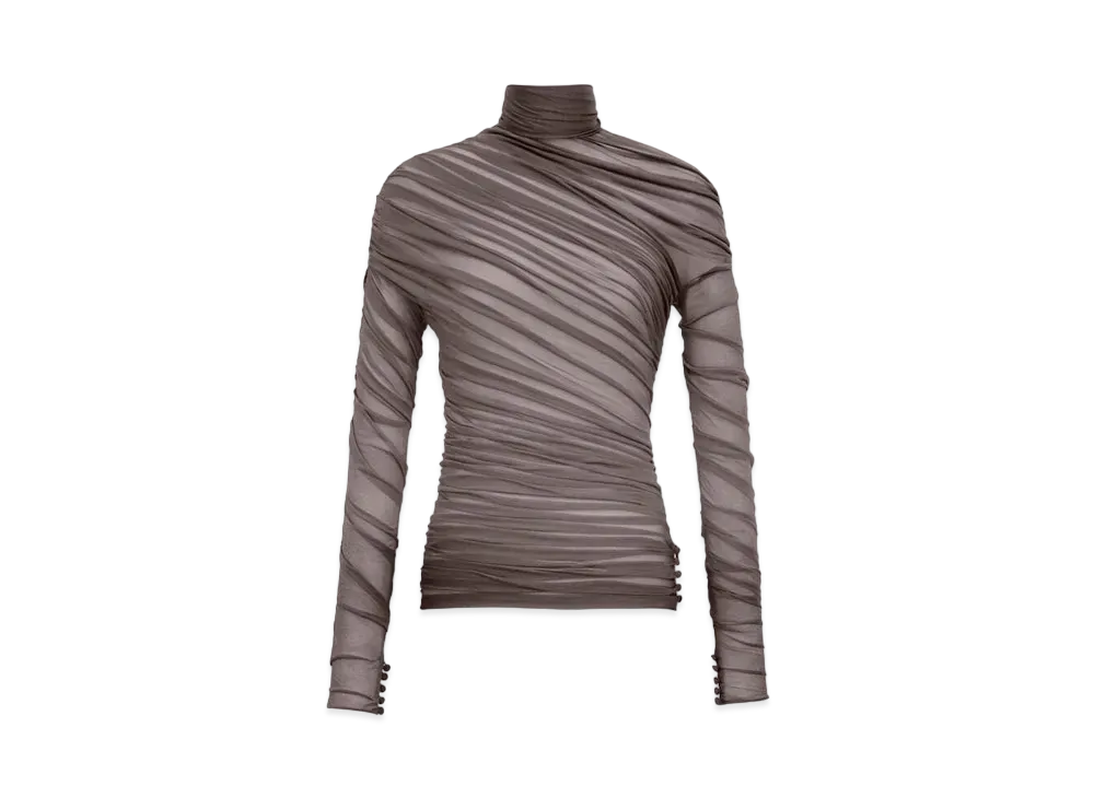 Saint Laurent Women's Ruched Top in Jersey Voile "Brown"