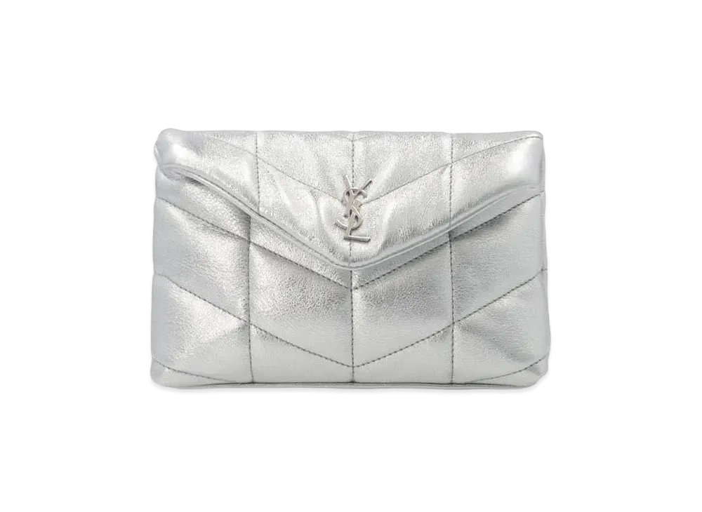 SAINT LAURENT Puffer Small Pouch In Crinckled Lame Leather "Silver Black"