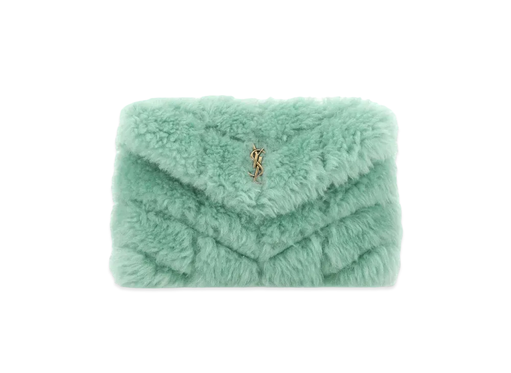 SAINT LAURENT Puffer Small Pouch In Quilted Shearling And Lambskin "Icemint"